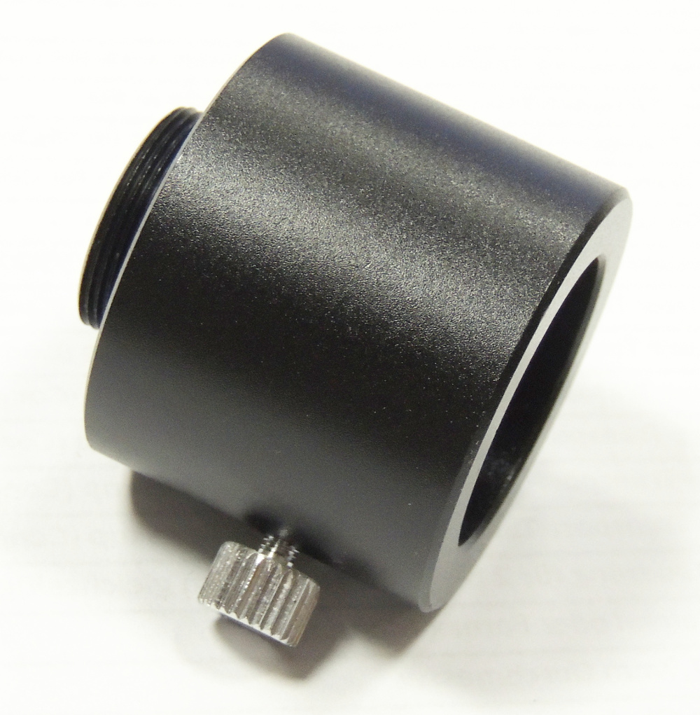 In diesem Fall wechselt der Adapter vom M18 Feingewinde auf eine Klemmung für 23,2mm Steckhülse, welche eine internationale Norm für Mikroskopokulare und viele Vorsatzlinsen ist.