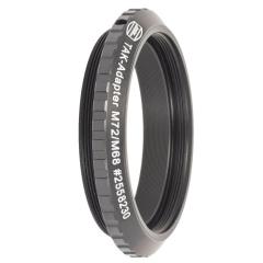 Der Großteil der Takahashi Korrektoren besitzt am Ende der kameraseitigen Adaption das verbreitete M54x0.75-Gewinde, dieser Adapter übersetzt auf das M68-Gewinde für den Anschluss von großformatigen Sensoren bis Vollformat (z.B. ASI6200) und darüber hinaus.