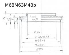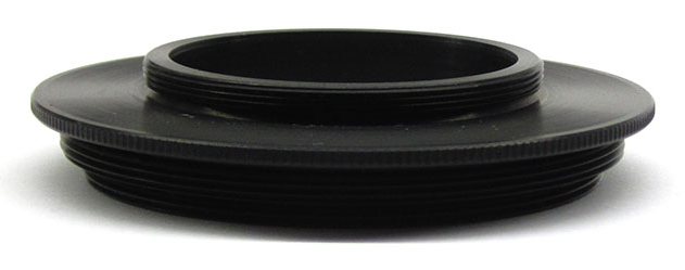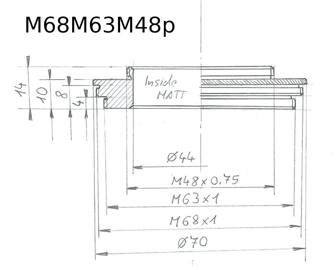 Dieser Adapter ermöglicht es, den kleinen Riccardi Reducer (mit M63-Gewinde) in einen Okularauszug mit standard M68-Innengewinde (Zeiss System) verkippungsfrei zu versenken.