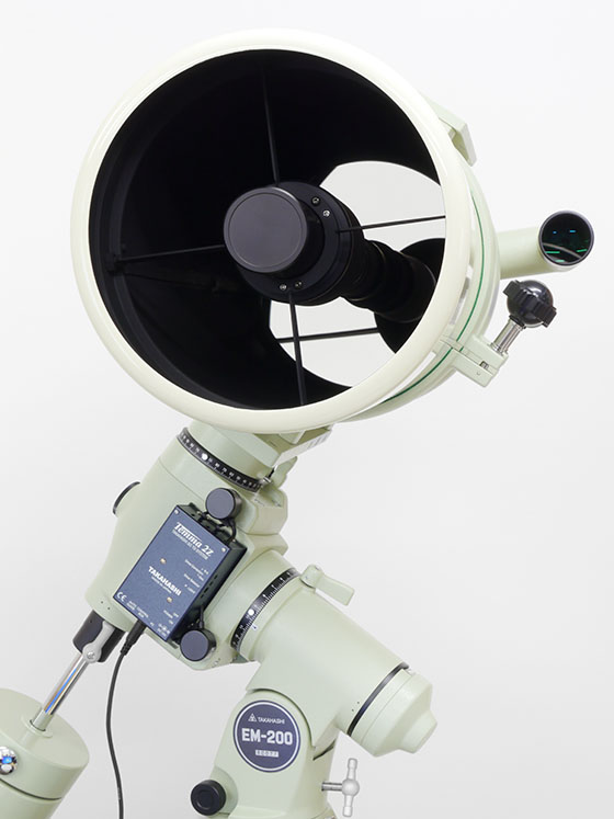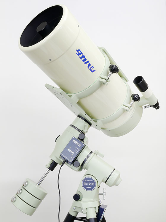 Der hochwertige 7x50 Sucher ist am Tubus fest angebaut und werkseitig mit einer Fadenkreuzbeleuchtung ausgestattet. Beim Tubus-Komplettpaket sind noch massive Rohrschellen mit Brücke zur Montage von weiterem Zubehör, sowie eine große Befestigungsplatte für die Takahashi EM-200, EM-400 und EM-500 enthalten. Eine 2 Zoll Verlängerungshülse und die Adapter auf 1,25“ werden ebenfalls mitgeliefert.