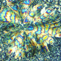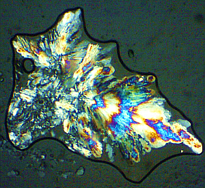 Vorerst ein klein wenig Theorie: Polfilter lassen nur Licht mit einer bestimmten Schwingungsrichtung durch. Viele Minerale haben die Eigenschaft, die Schwingungsebene des Lichts zu drehen: Sie werden als "optisch anisotrop" oder "doppelbrechend" bezeichnet. Zur Untersuchung dieser Mineralien und Gesteine werden Dünnschliffe angefertigt. Diese werden vor dem Mikroskopobjektiv zwischen zwei Polfiltern platziert, wobei der zweite Polfilter um 90 Grad gegenüber dem ersten Filter gedreht ist (sog. gekreuzte Polarisatoren). Bei Mikroskopen ist der zweite Polfilter im Polarisationsokular eingebaut. Dieser Aufbau ermöglicht viele interessante Untersuchungen. Durch Drehen des Polarisationsokulars werden doppelbrechende (anisotrope) Strukturen sichtbar - isotrope bleiben dunkel. Dank der Interferenzerscheinungen sieht man farbige Strukturen, wenn man das Objekt dreht. Somit kann man viele Informationen über die Zusammensetzung des Objektes (Gestein oder Texturen von Flüssigkristallen) gewinnen.