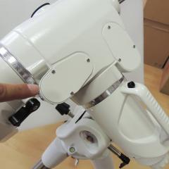 Sehr starke, in vorgespannten Wälzlagern gelagerte Stahlachsen. Die Montierung läuft gleichmäßig, hat geringstes Schneckenspiel in RA und DEC Achse und ist vor allem sehr steif. Dementsprechend erhöht sich die Tragefähigkeit. Die empfindlichen Teile sind im Kopf fest eingehaust, gut geschützt vor Staub, Feuschtigkeit und Tau. DasTripod hat 45mm dicke Stahlbeine, welche von unten mit einer Platte gegen gespreizt werden können: Höhere Stabilität und Ablageplatz für Okulare in einem. Das Polarscope hat die neue Strichplatte mit Präzessions korrigierter Skala.