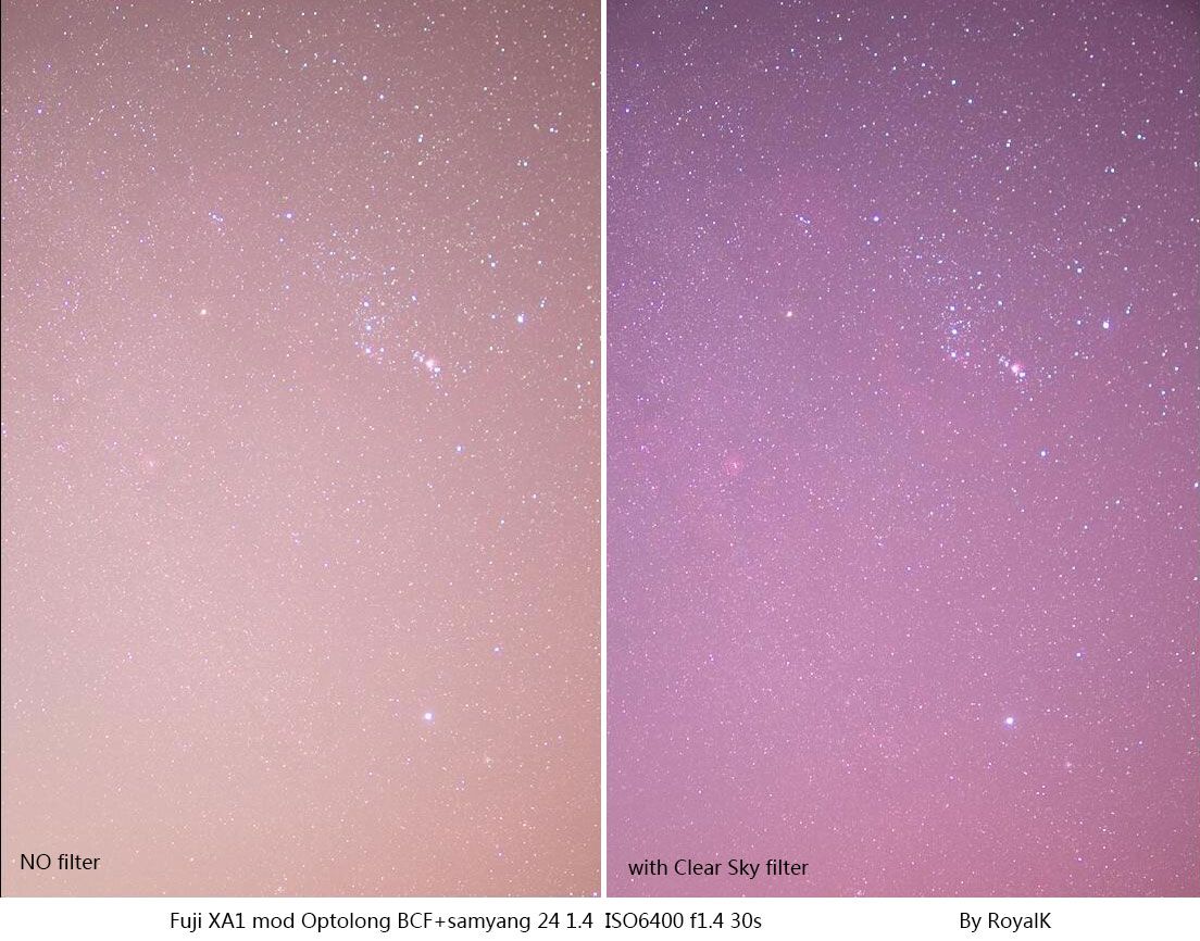 Außerdem passen Objektivfilter auf eine breite Palette von Systemen, Clip-Filter sind hauptsächlich für Canon und Nikon erhältlich, mit diesen Filtern haben nun auch Besitzer anderer Kamerasysteme die Möglichkeit, qualitativ hochwertige Filter gegen Lichtverschmutzung zu verwenden.