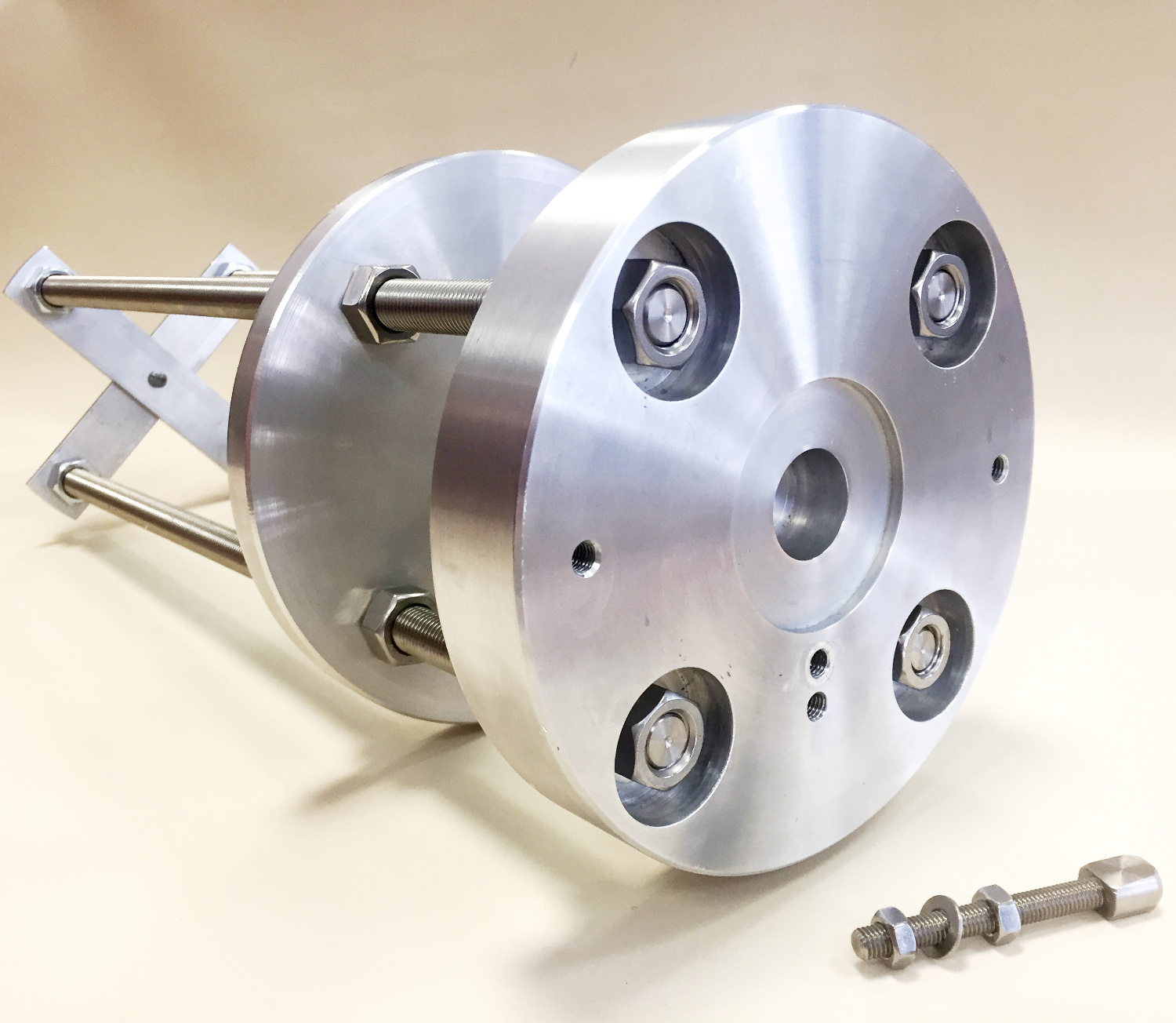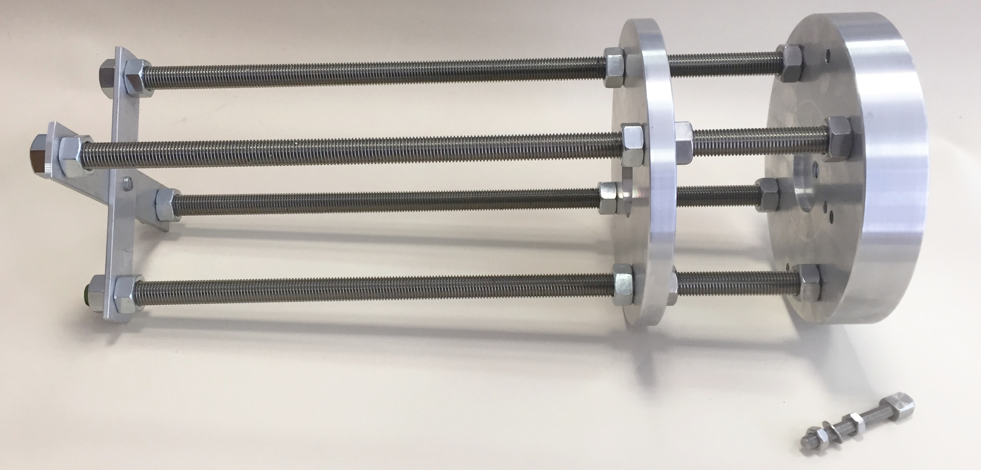 Der Betonsäulen-Adapter besteht aus drei Ebenen, die durch 4 starke M16 Gewindestangen verbunden sind: