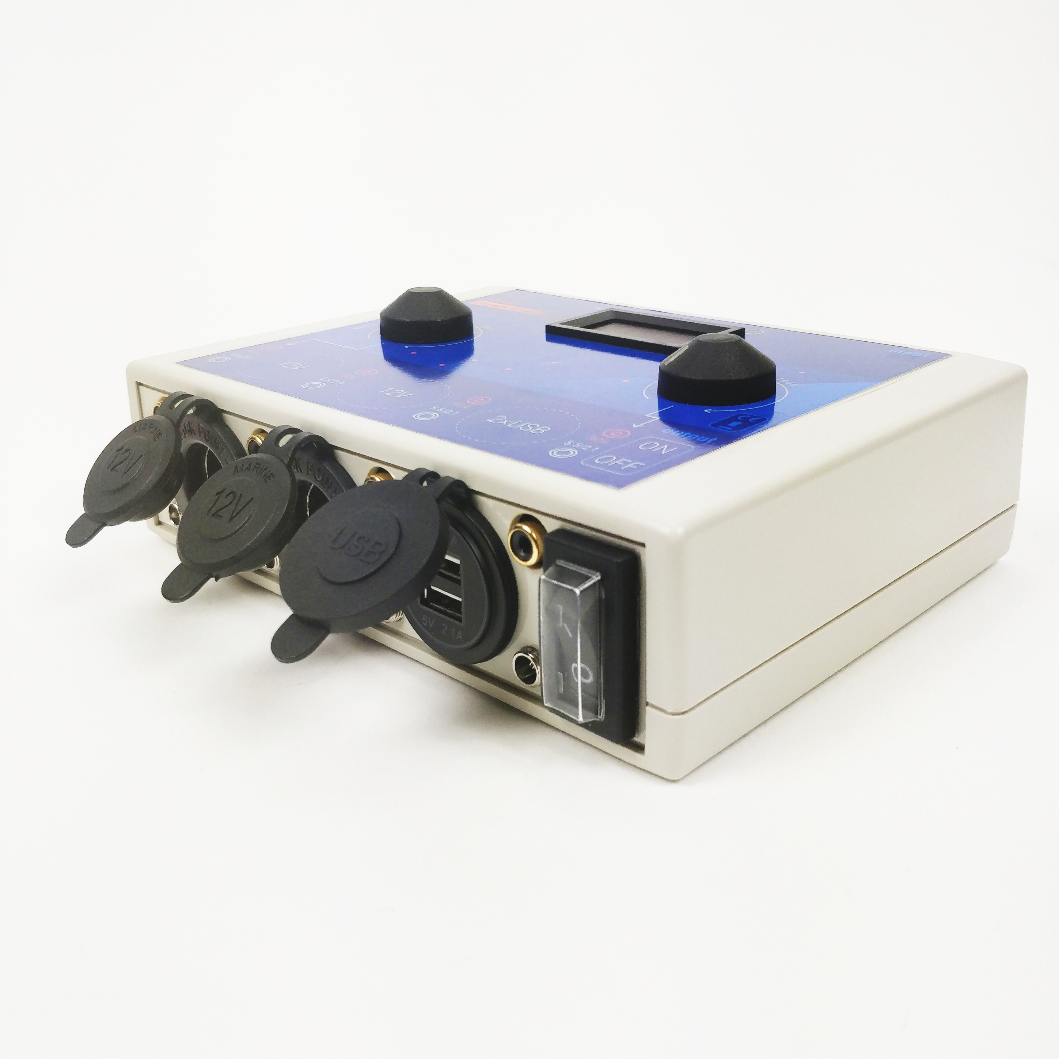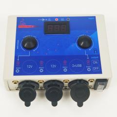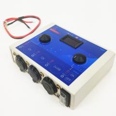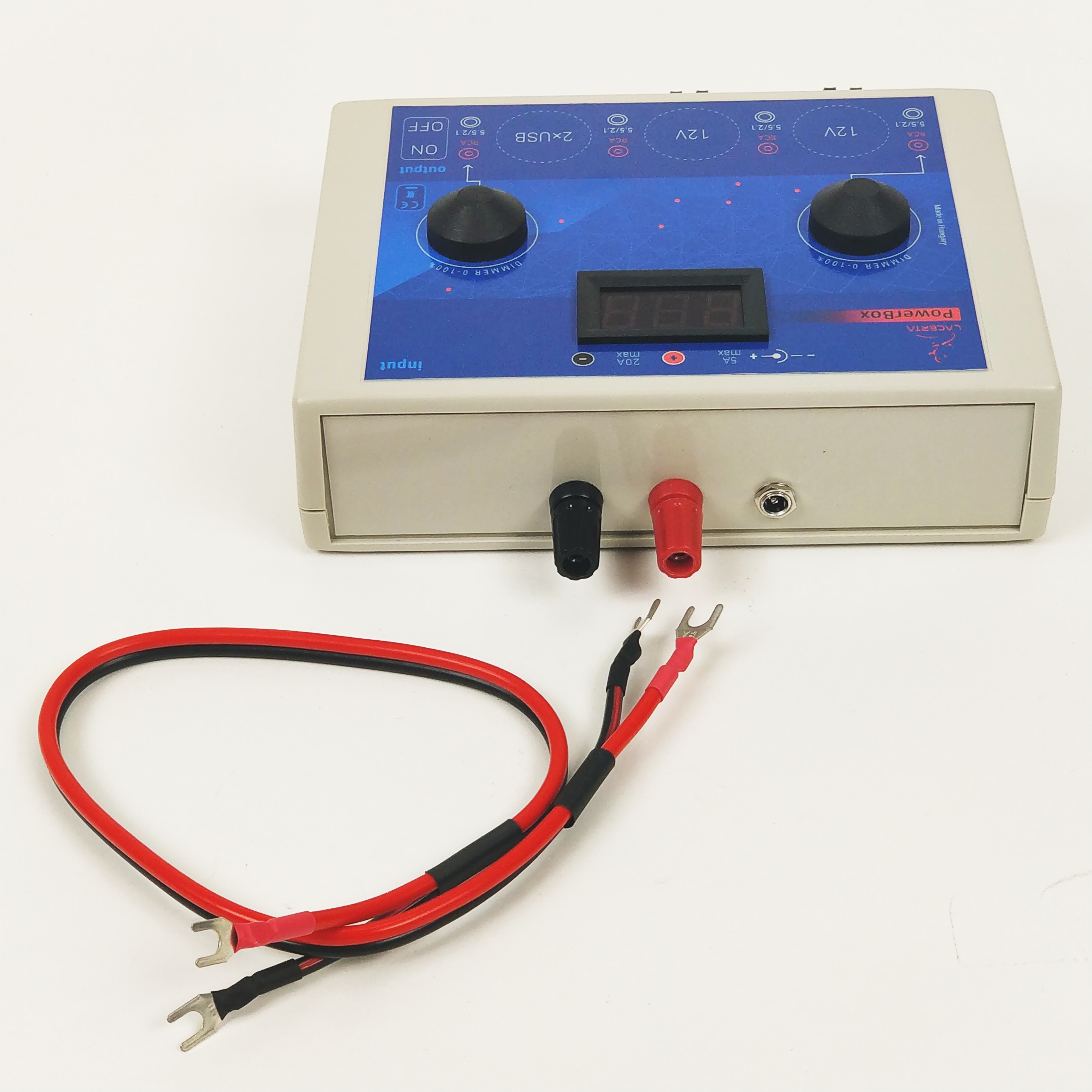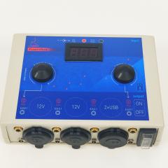 Ausgänge, davon 2 mit stufenlosem Regler. Die Spannung lässt sich (unter Last) mit einem