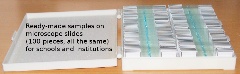 100 Stk. des gleichen Dauerpräparats auf Objektträger fixiert (Präparat nach Wunsch): Schulen und Institute haben oft Bedarf an einer Vielzahl gleicher Präparate zu Demonstrations- oder Übungszwecken. Wir erstellen Ihnen ein Angebot auf Wunsch, der angegebene Preis ist ein Richtpreis und gilt für einfache Präparate (zB. Zwiebel Epidermis, Lactobakterien, Mandibeln der Mücke, etc.) (Bild ganz oben)
