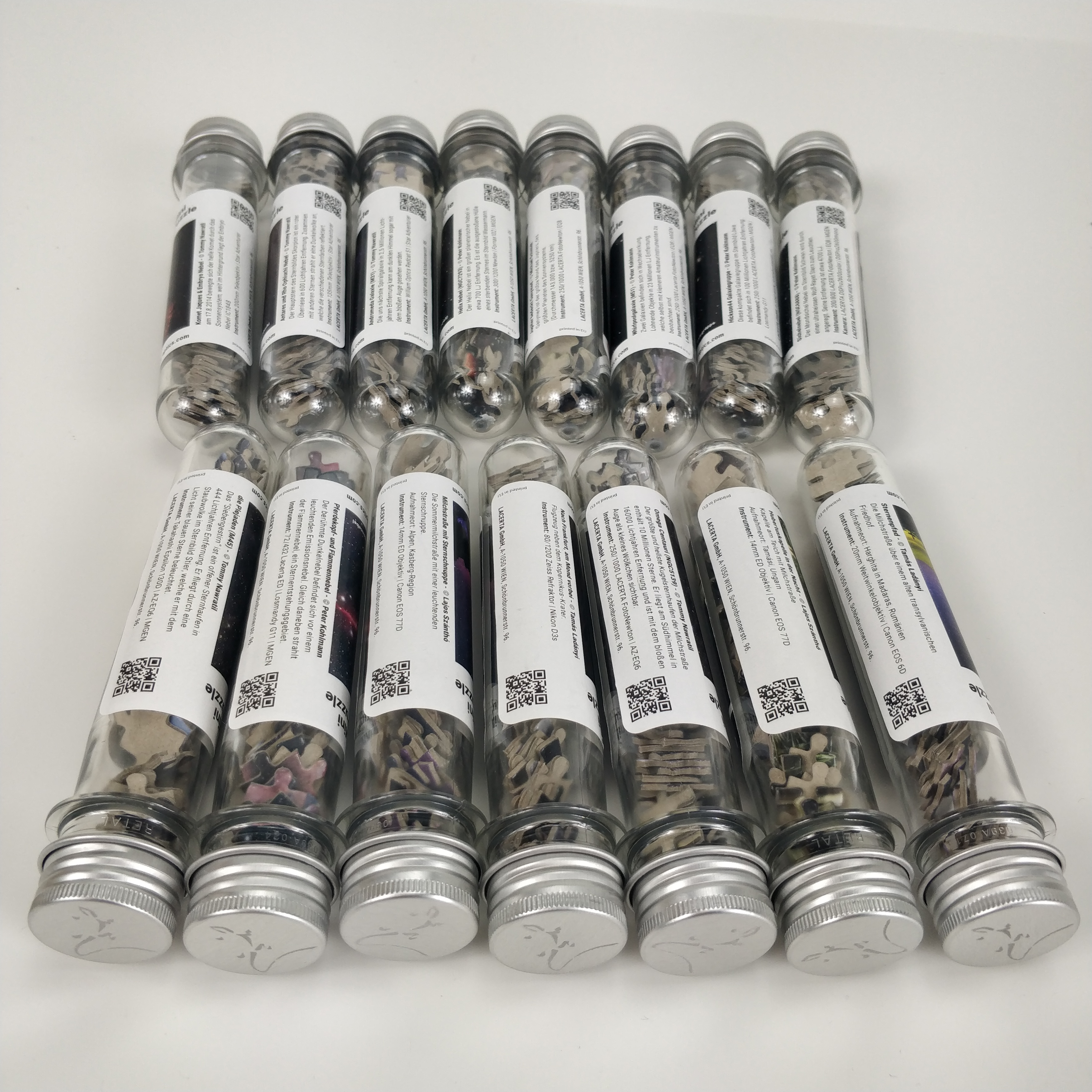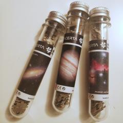 Auch die Verpackung ist besonders. Anstelle einer Schachtel werden die Puzzleteile in ein Reagenzglas gelegt. Man kann es auch symbolisch sehen...