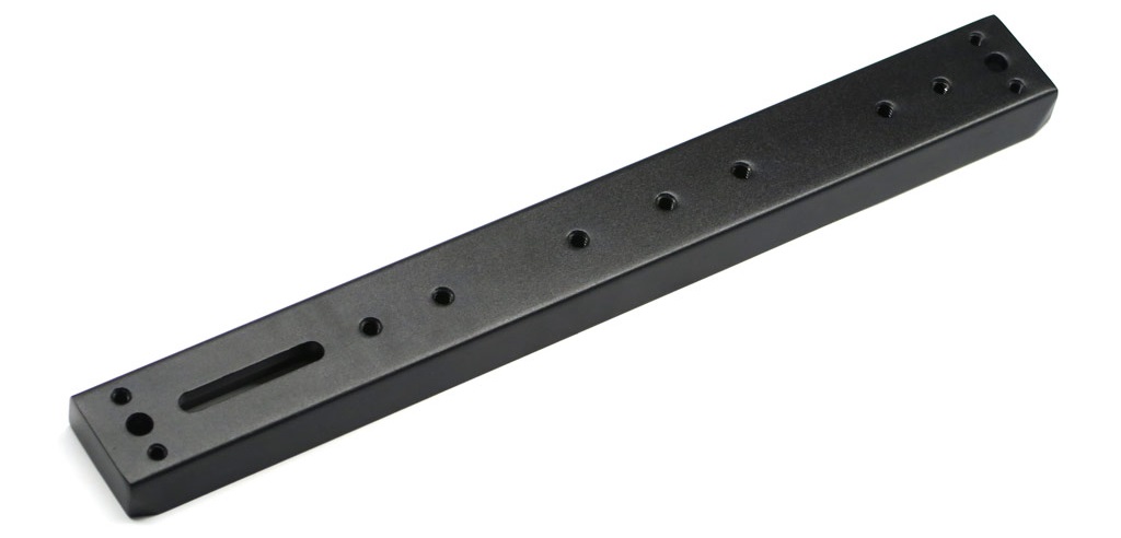 An den Enden sind Löcher für M6 oder 1/4 Zoll Schrauben zum Befestigen von Rohrschellen, der Abstand beträgt 309mm. Es finden sich weitere Gewinde und Löcher für individuelle Montagen, auch ein Langloch ist vorhanden.