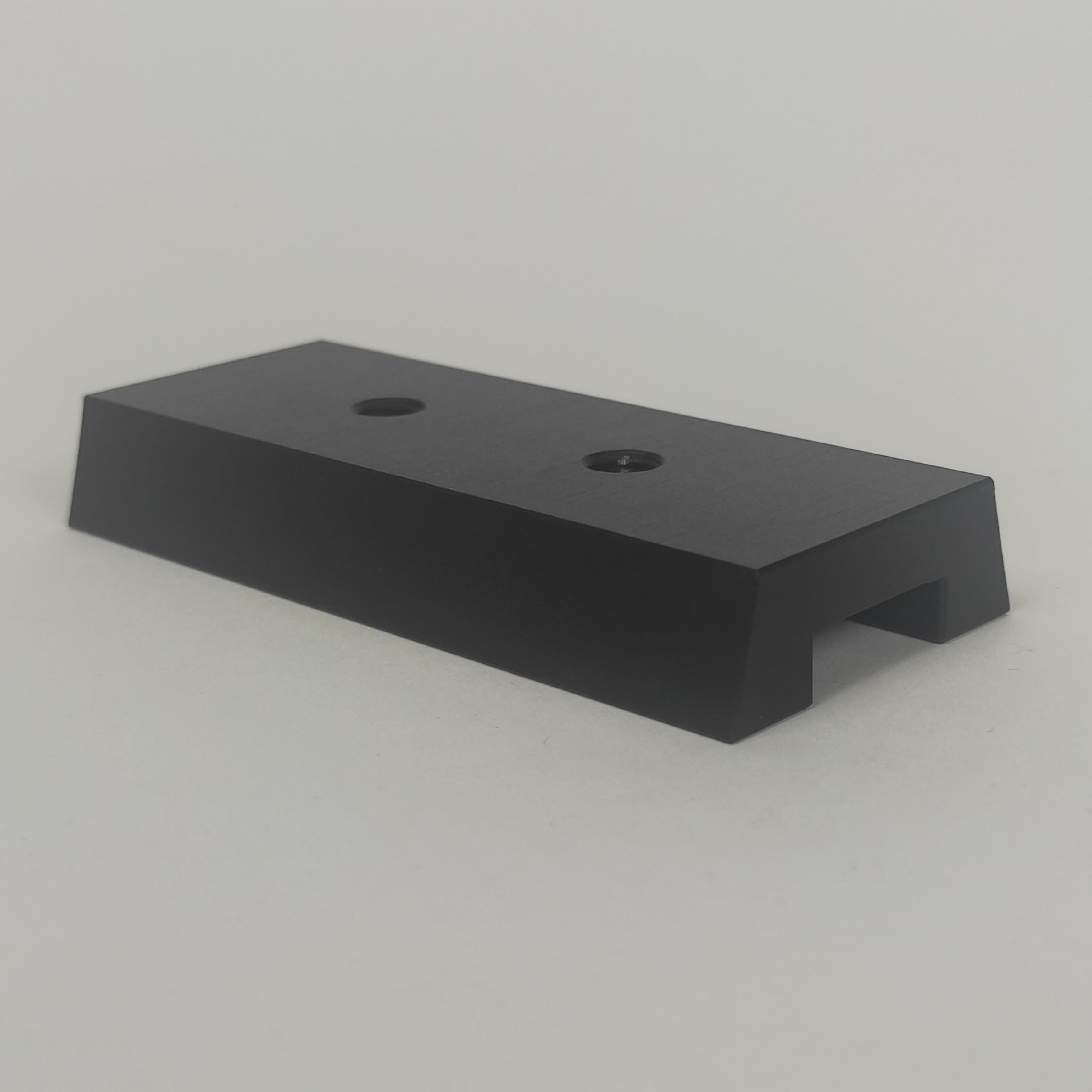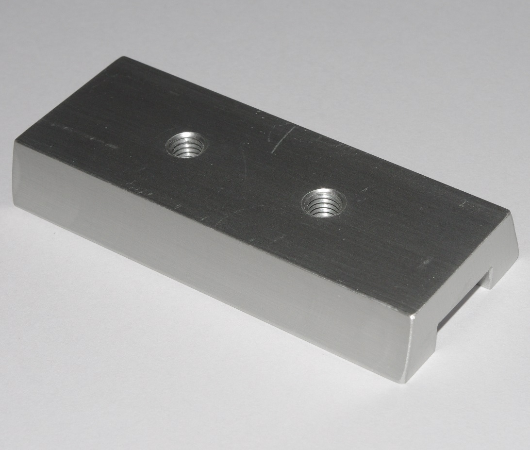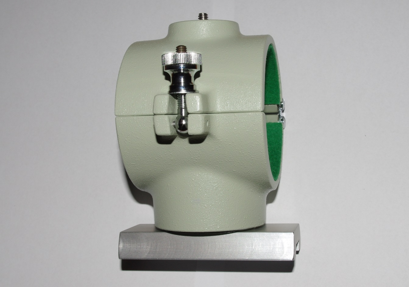 Die Länge beträgt 10cm, sie passt ideal für die einteiligen Takahashi Rohrschellen von 68mm - 156mm. Die Schiene besteht aus gefrästen Aluminium-Vollprofil, sie besitzt an der Unterseite aber eine 20mm breite Ausnehmung mit 6,5mm Tiefe, um auch bei Prismenklemmen mit überstehenden Schraubenköfen verwendet werden zu können.