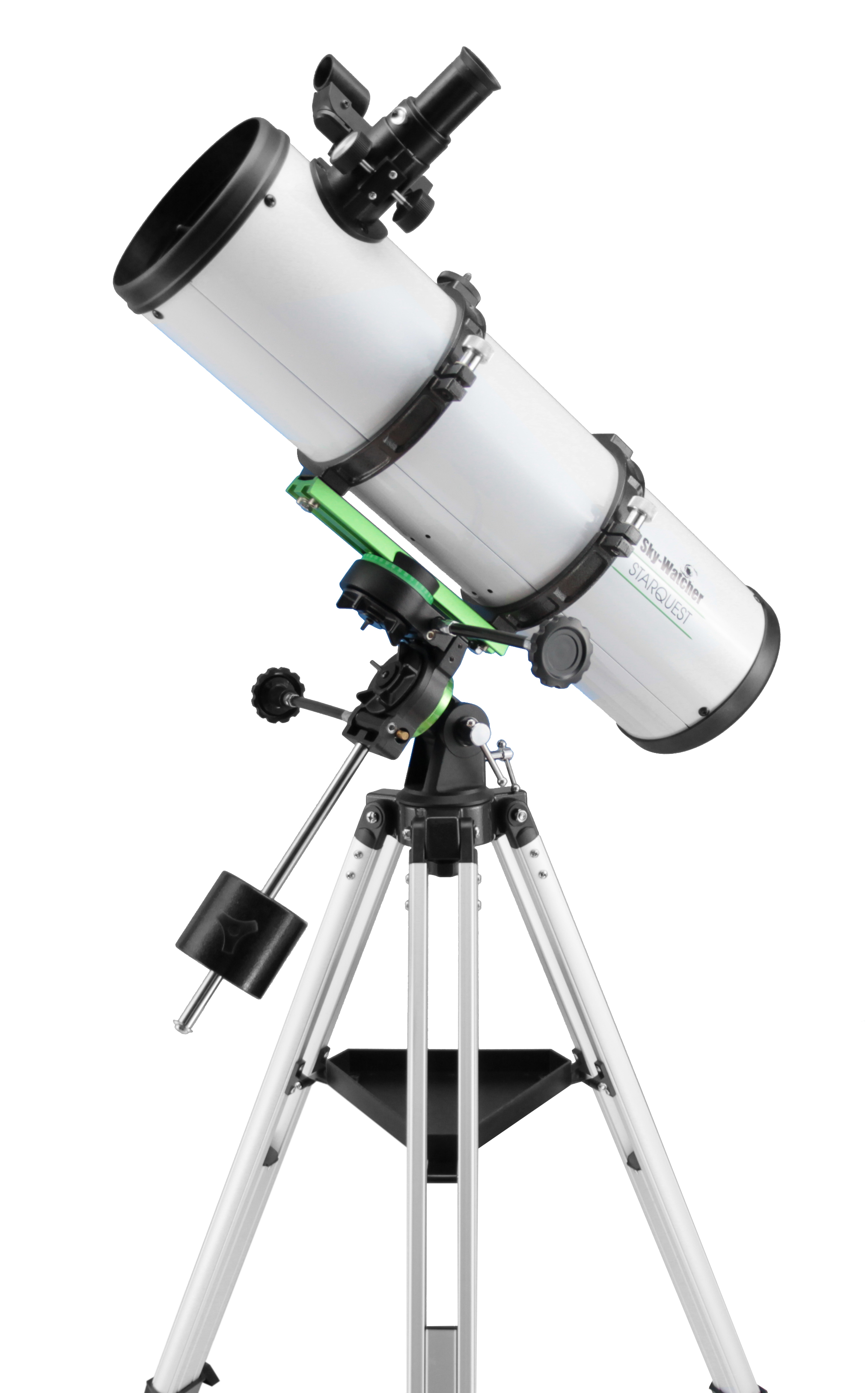 Unser Sonnensystem bietet da schon eine Menge: Zum Beispiel die wunderbaren Krater auf dem Mond. Besonders schön sieht man sie am Terminator (Licht/Schatten-Grenze am Mond). Oder auf der Sonne die Flecken - natürlich nur mit passendem Objektiv-Sonnenfilter! Leichte Beute sind damit auch die Ringe des Saturn, oder der Jupiter mit seinen vier großen Monden und den Wolkenbändern auf seiner Oberfläche. Die empfohlene maximale Vergrößerung ist 260x. Es bietet eine sehr große Öffnung und ist daher hervorragend für die Beobachtung von DeepSky-Objekten geeignet. Die einfache Handhabung und das umfangreiche Zubehör machen dieses Gerät zu einem idealen Teleskop für Einsteiger und Kinder, welche die ersten Erfahrungen in der Astronomie sammeln wollen. Mit der neuen parallaktischen StarQuest-Montierung, ist auch die Beobachtung im Zenit möglich, das ist bei azimutalen Montierungen oft schwierig oder gar unmöglich. Sie ermöglicht es auch, die Erdrotation mit nur einem Drehknopf auszugleichen, dies kann jedoch auch ein optionaler Motor erledigen, was die Beobachtung noch weiter erleichtert.