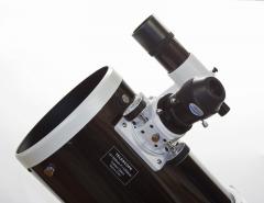 Dieser Newton mit seiner großen Öffnung von 200mm, ist das ideale Gerät für die DeepSky-Beobachtung, viele Objekte zeigen bereits Strukturen, Kugelsternhaufen werden teilweise bis in das Zentrum in Einzelsterne aufgelöst. Der Gewinn des Lichtsammelvermögens gegenüber der 150mm-Optik liegt bei 45%, natürlich kommt auch hier ein Parabolspiegel aus Pyrex zum Einsatz. Er bietet ein Auflösungsvermögen von 0,69" nach Rayleigh, bei der Beobachtung von Mond oder Planeten werden daher auch feinste Einzelheiten sichtbar, für die Sonnenbeobachtung gibt es einen gefassten Objektivsonnenfilter. Auch für fotografische Einsätze ist er sehr zu empfehlen, der justierbare Crayford-Auszug mit Adapter auf T2-Gewinde zeigt alle seine Vorteile, eine 1:10 Untersetzung ist nachrüstbar. Die Fangspiegelstreben sind sehr dünn ausgeführt, so dass Abschattungen minimiert und der Kontrast erhöht werden.