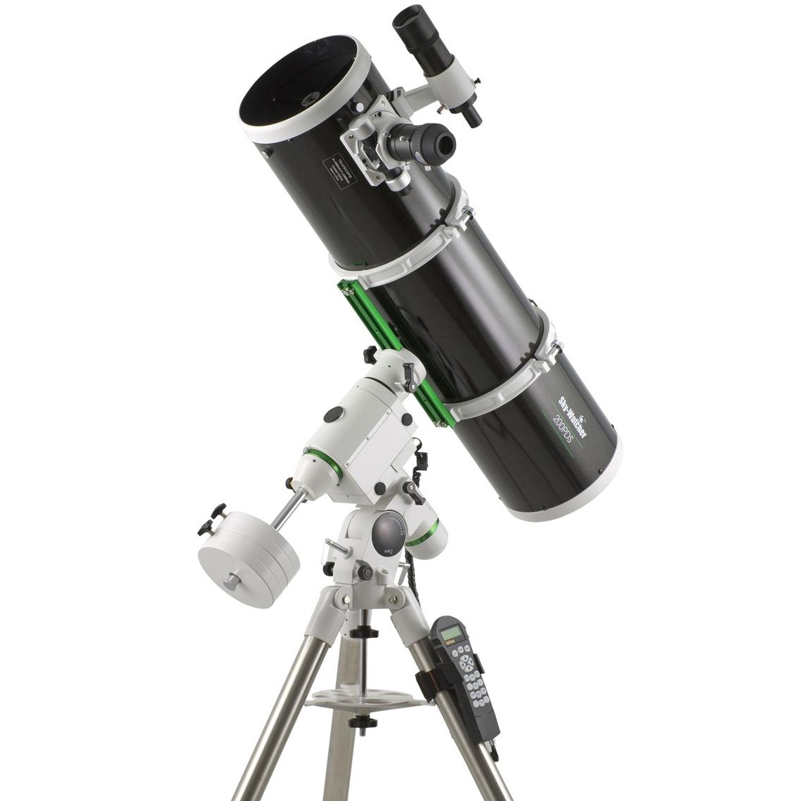 Dieses Spiegelteleskop bietet eine Sonderausstattung, die vor allem bei der DeepSky-Fotografie Vorteile bringt. Der Fangspiegel ist für eine gute Ausleuchtung größer dimensioniert und der kugelgelagerte Crayford Auszug besitzt für exaktes Fokussieren ab Werk eine 1:10 Untersetzung. Die HEQ5-Montierung mit Computersteuerung hält den Tubus mit ausreichender Stabilität für fortgeschrittene Anwendung in der Astrofotografie.