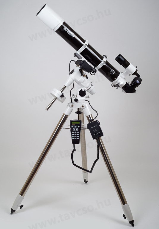 Optischer Tubus (102/1000), parallaktische Montierung EQ3 mit SynScan GOTO-Steuerung, Stahlrohrstativ, Gegengewicht, Polsucher, 6x30 Sucher, 2 Barium Super Okulare 25 und 10mm, 2“ Zenitspiegel mit Reduzierung