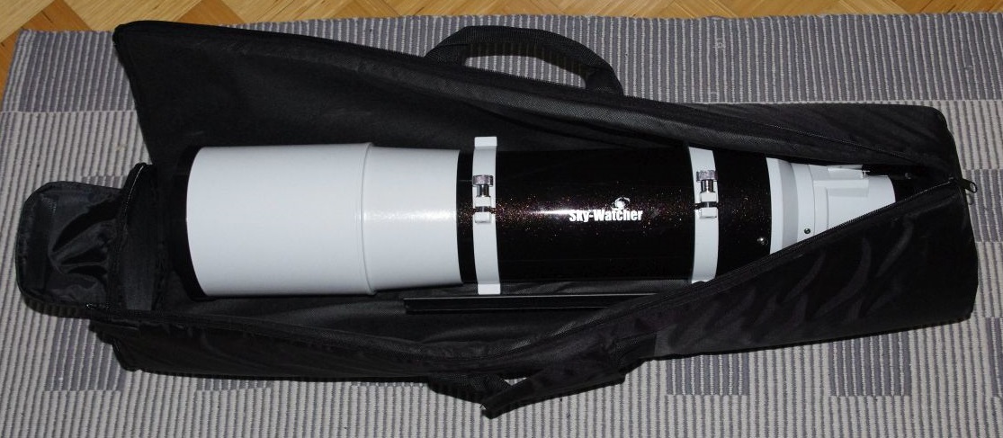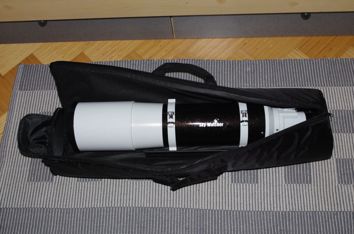 TIPP: Die Tasche "bagEQ6tripod" für das EQ6 Stativ passt auch hervorragend für diesen Refraktor, siehe Bild unten.