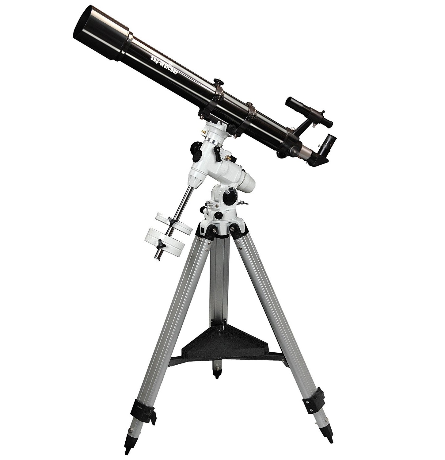 Der beliebte 90mm Refraktor spielt seine Stärken vor allem bei der Mond- und Planetenbeobachtung aus, die Kontrastleistung ist sehr gut, der Farbfehler dabei erfreulich gering. Wir empfehlen dieses Teleskop Einsteigern, die vor allem an den Objekten unseres Sonnensystems interessiert sind. Es ist nicht nur mit vielen optischen Zubehörteilen, sondern auch mit Motor- oder Computersteuerung nachrüstbar und bis zur Astrofotografie ausbaufähig.