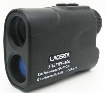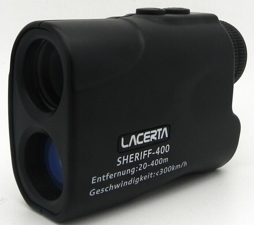Sheriff-400 Entfernungs- und Geschwindigkeitmessgerät (designed by Lacerta), mit Tasche und Riemen.