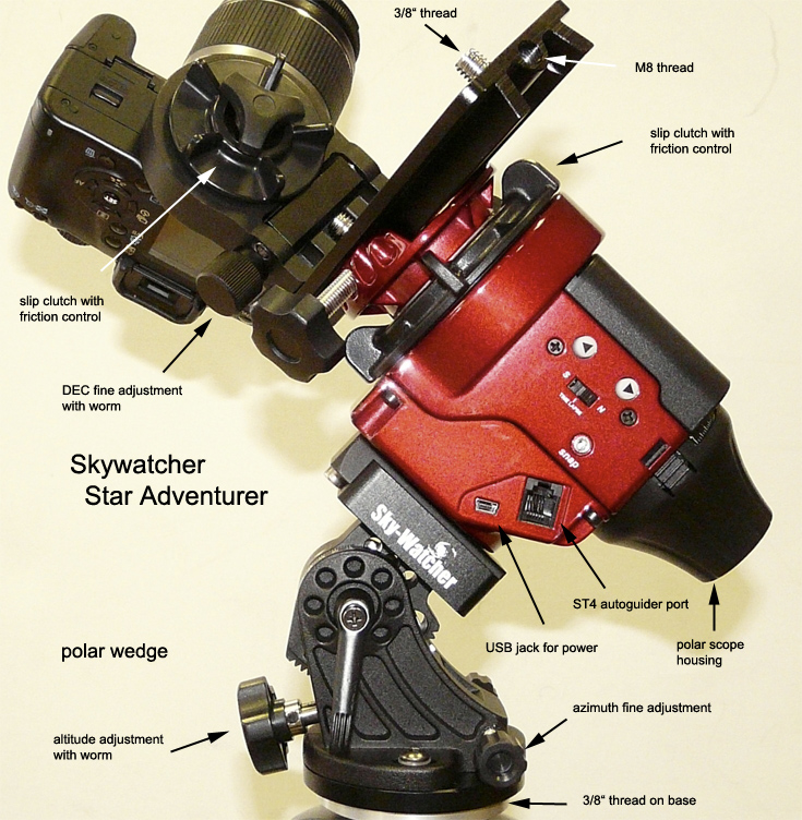 Im Handling ist der Star Adventurer sehr angenehm, im Vergleich zu den anderen Trackern am Markt. Man kann die Klemmungen leicht greifen, und die Rutschkupplungen haben diese grosse Friktionskupplung. Man hat nicht so ein Gefrickel mit mini Schrauben die man kaum zu fassen bekommt aber ganz fest anziehen, und beim Verändern der Kameraposition wieder aufbekommen muss. Die Poleinstellung lässt sich leicht und ganz fein variieren, man kann ganz kleine Bewegungen vornehmen und beim Klemmen verändert sich nichts.
