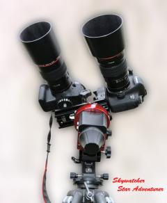 Ich hatte das 200L Objektiv auf der Eos, und nach dem Ausrichten auf Meridian/Äquator mal ein paar 2 Minuten Fotos gemacht. Die sahen schon recht gut aus, aber es brauchte noch etwas Feinjustage an der Polausrichtung,