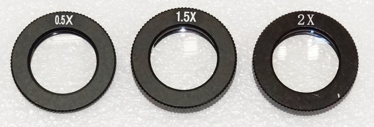 Die Vorsatzlinsen lassen sich schnell und unkompliziert miteinander austauschen (das original Mikroskop wird standardmässig mit einer 1x Vorsatzlinse geliefert).