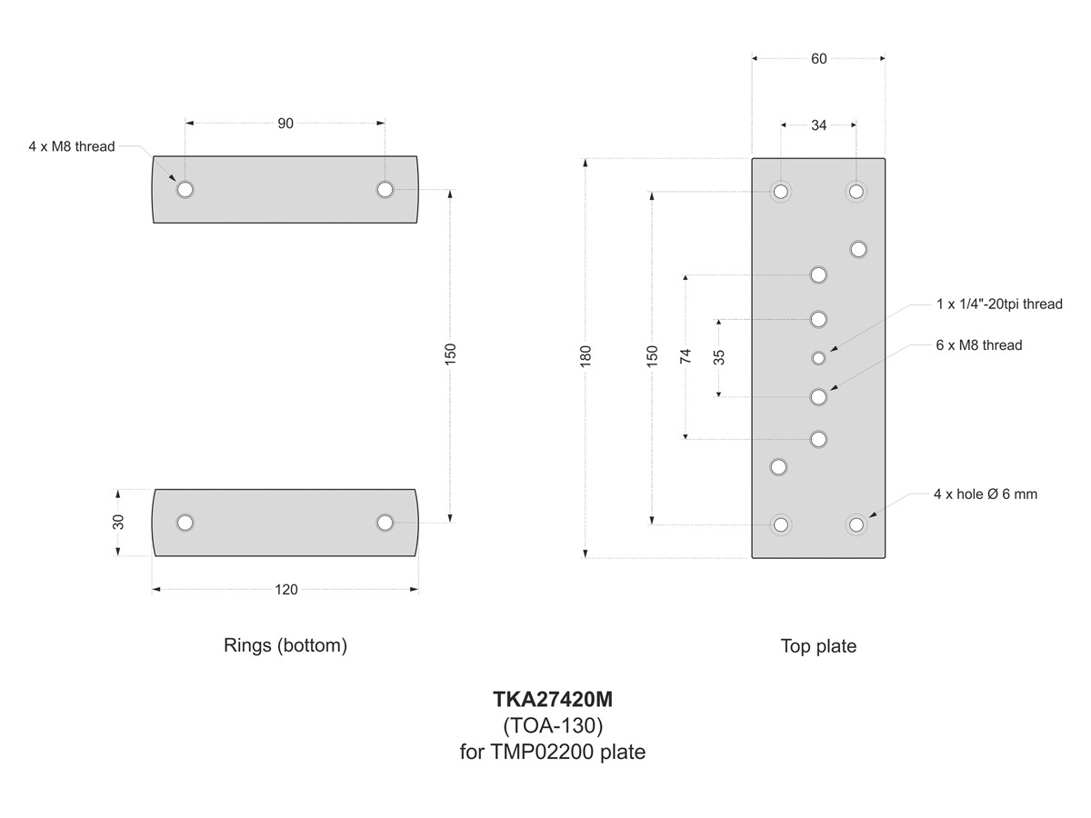 TMP02400 Montageplatte für Rohrschellen mit 130mm oder 180mm Brücke (z.B. für Epsilon) 117.00 EUR