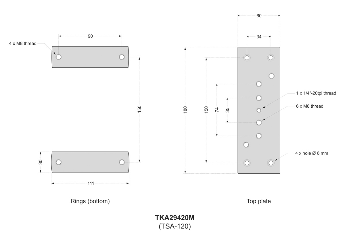 TMP02400 Montageplatte für Rohrschellen mit 130mm oder 180mm Brücke (z.B. für Epsilon) 117.00 EUR