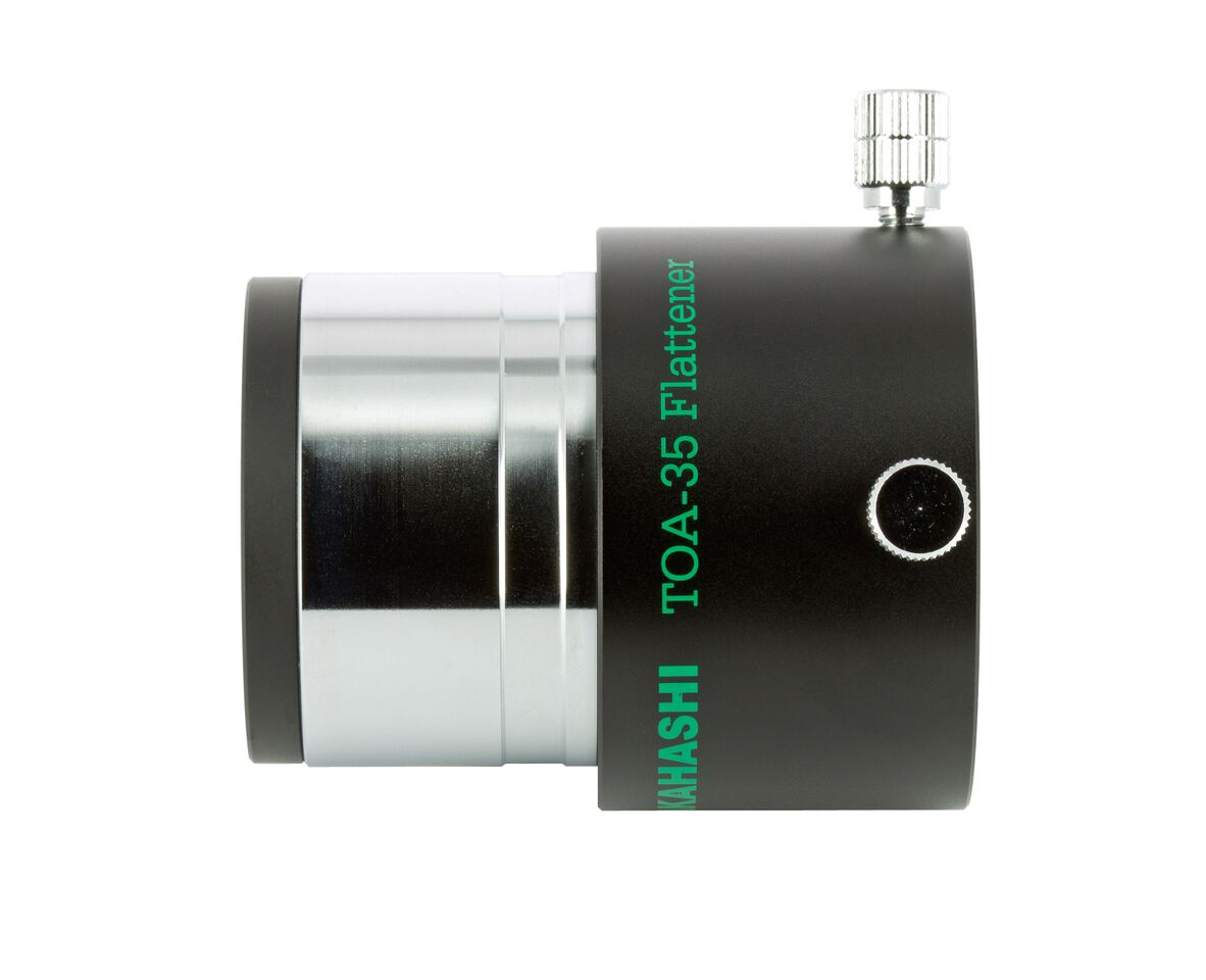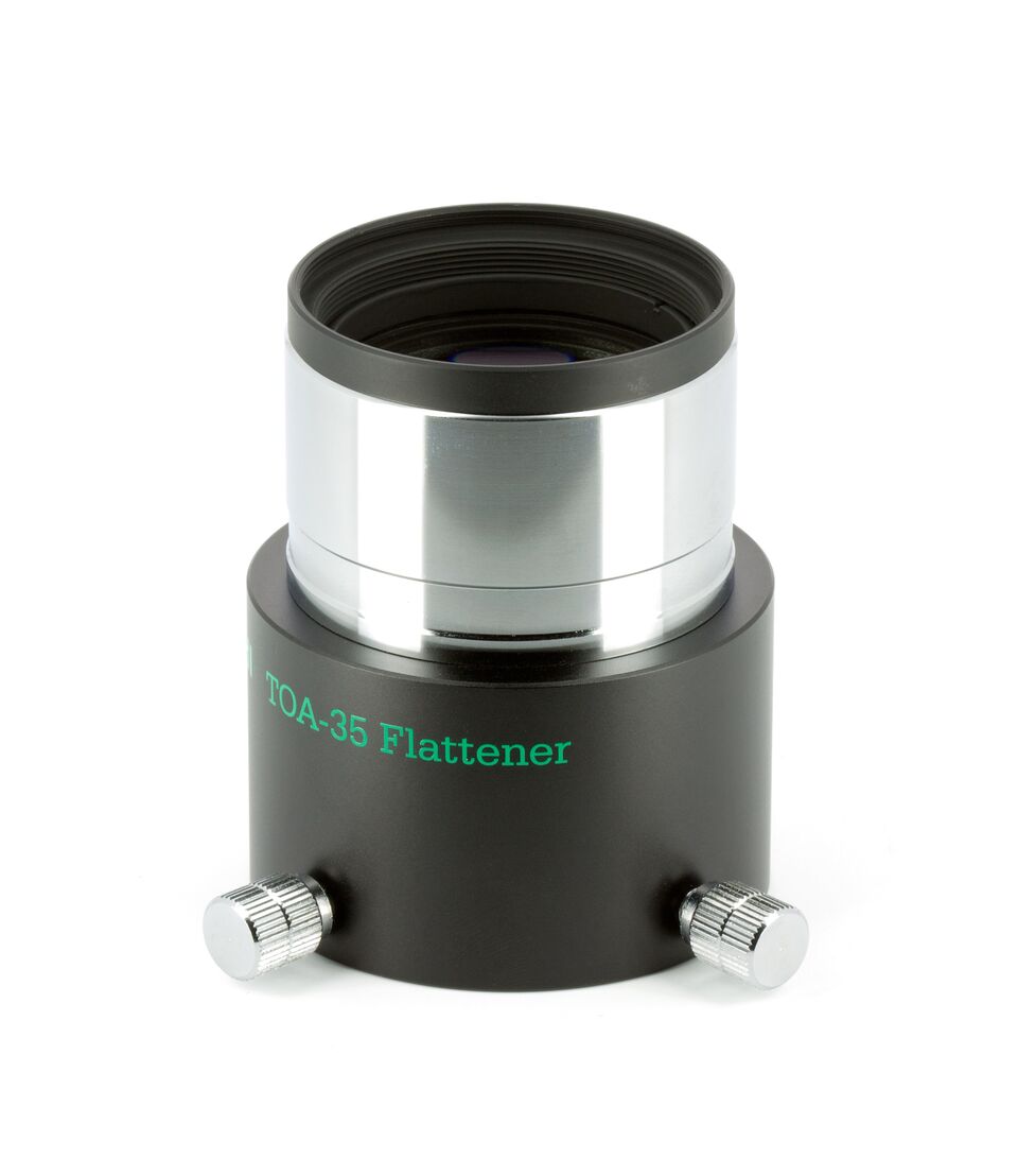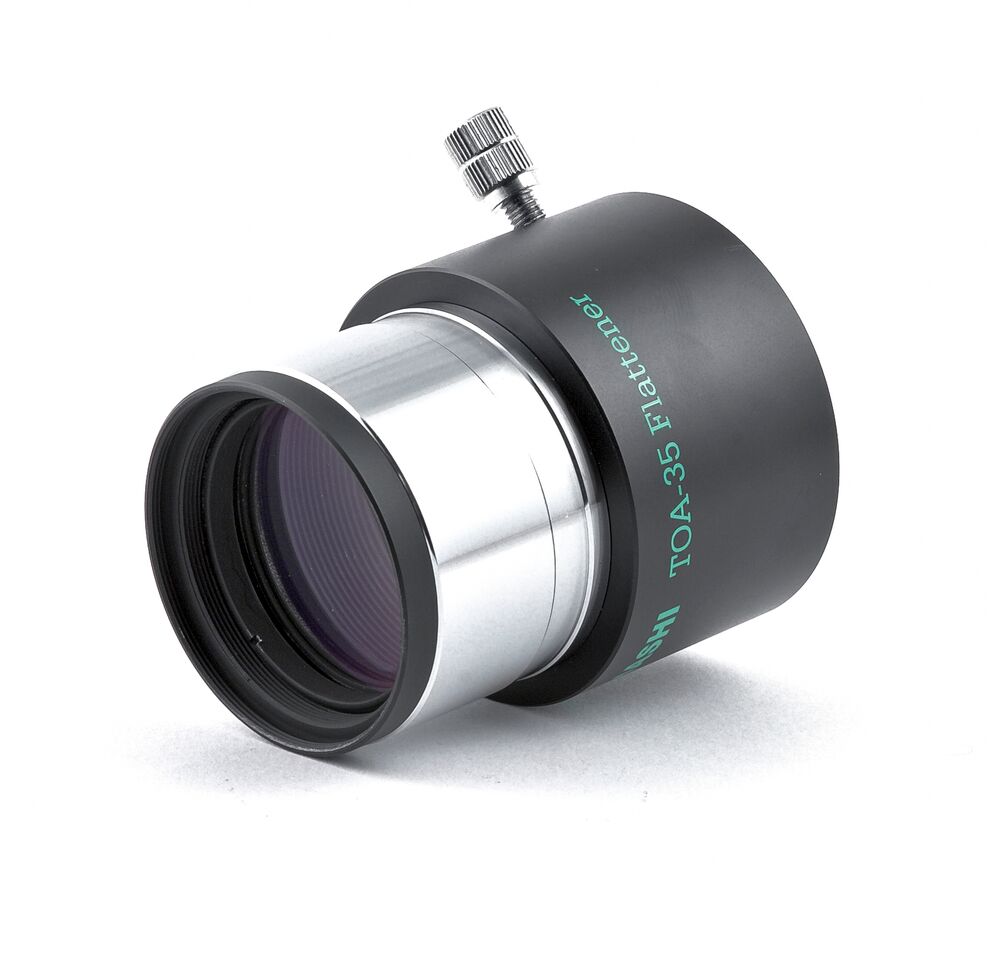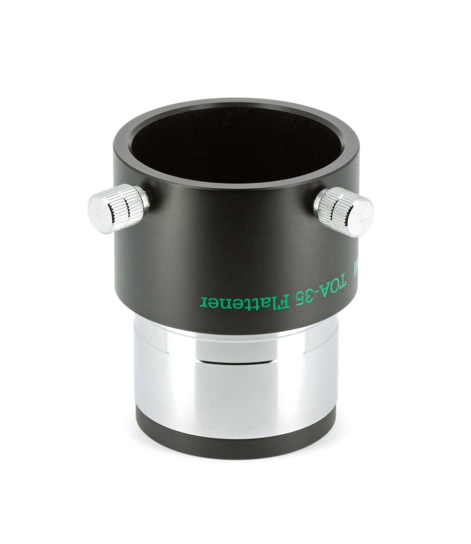 Dieser steckbare Flattener (beidseitig 2 Zoll), ist geeignet für den TSA-102/TSA-120 sowie den TOA-130 und TOA-150. Vorne in der Steckhülse besitzt er ein M48x0,75 Filtergewinde. Zum Anschluss einer Kamera, benötigt man den CA35 Kameraadapter in der Version mit 2 Zoll Steckhülse (TKA31201) und den jeweiligen M54 wide t mount Bajonettring.