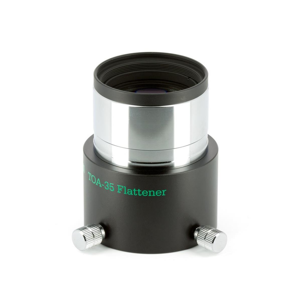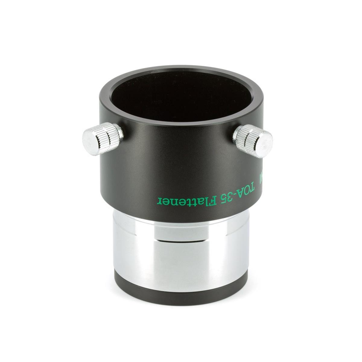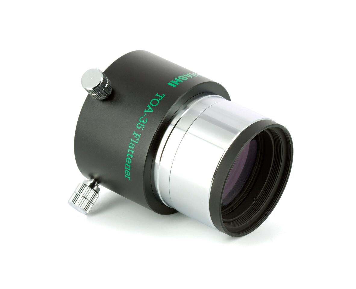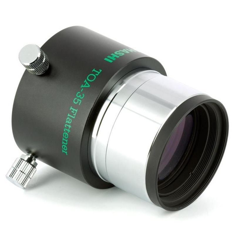 Dieser steckbare Flattener (beidseitig 2 Zoll), ist geeignet für den TSA-102/TSA-120 sowie den TOA-130 und TOA-150. Vorne in der Steckhülse besitzt er ein M48x0,75 Filtergewinde. Zum Anschluss einer Kamera, benötigt man den CA35 Kameraadapter in der Version mit 2 Zoll Steckhülse (TKA31201) und den jeweiligen M54 wide t mount Bajonettring.