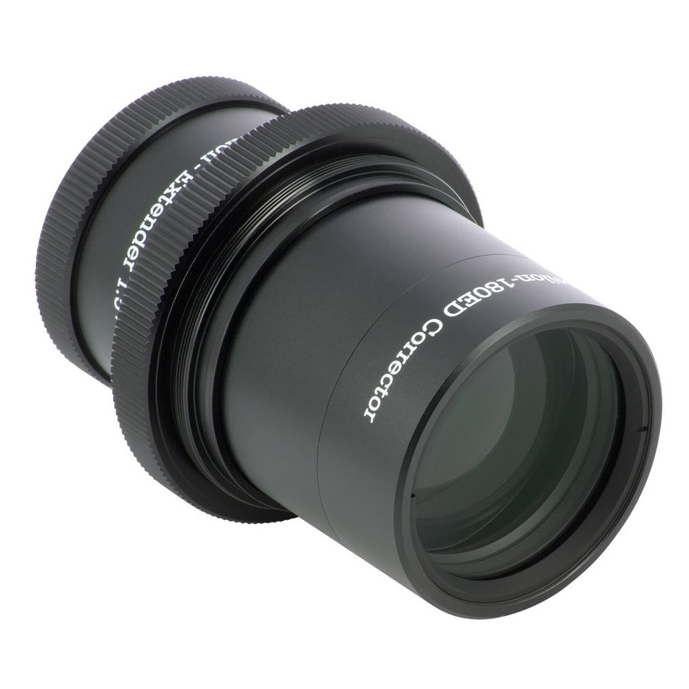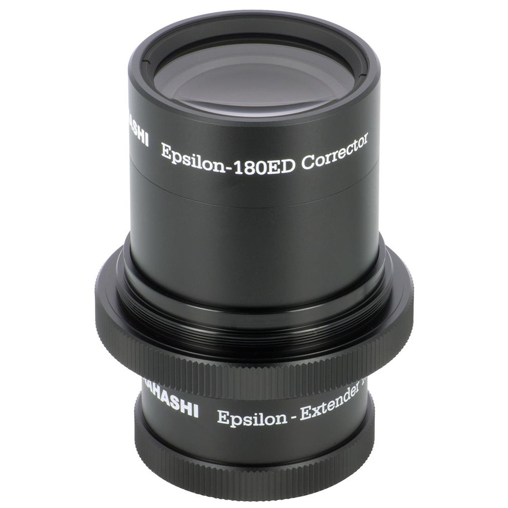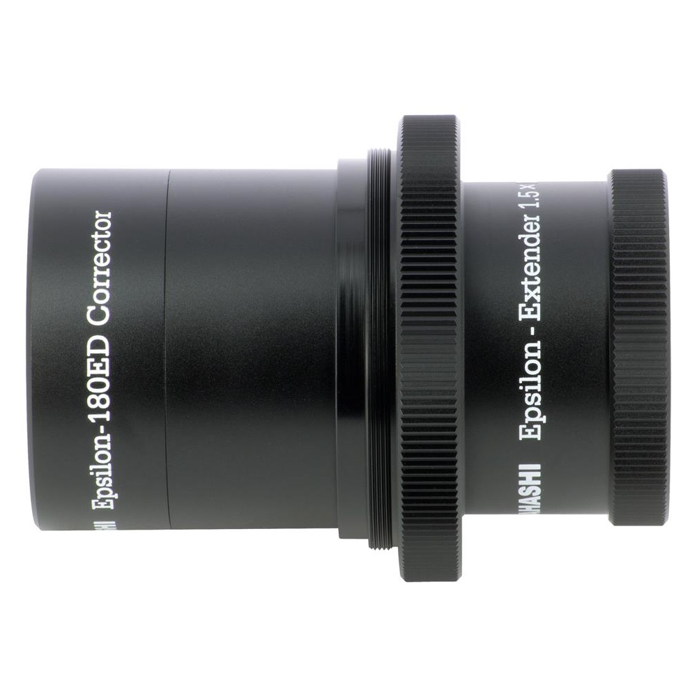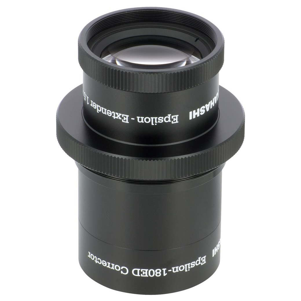 Takahashi ist es gelungen, für den Epsilon-180ED einen Extender zu entwickeln, der die ausgezeichnete Sternabbildung auf der Achse wie im Feld beibehält. Die Brennweite wird um den Faktor 1.5x auf 770mm verlängert (f/4.3), daher ist der Epsilon auch für die Fotografie kleinerer Objekte geeignet, was das Einsatzspektrum deutlich erweitert.