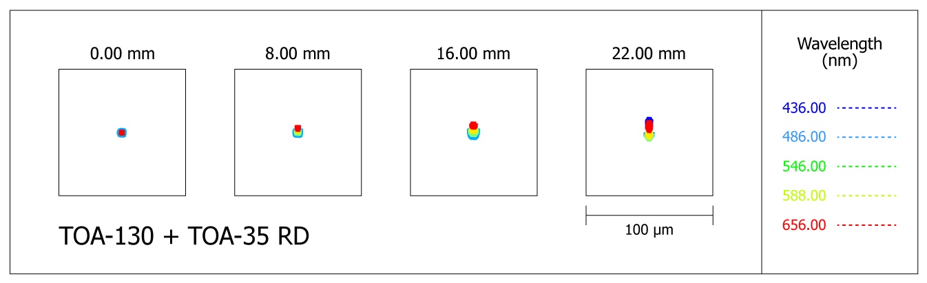Die TOA-Optiken sind eine ausgesprochen leistungsfähige Basis für alle möglichen fotografischen Anwendungen, vor allem mit dem großen Flattener für das Pentax 67 Format (TKA31583S) oder dem neuen Super-Flattener für Pentax 645 (TKA31587S) gibt es auch für sehr große Sensoren passende Korrektoren, hier ist Takahashi eine Klasse für sich! Der 67-Flattener mit 92mm Bildkreis erzeugt in der Bildmitte 3 Mikrometer kleine Spots, am Rand vom 67er Format sind es maximal 20my, 100% Ausleuchtung bis 70mm Bildkreis (60% bei 92mm). Der Super-Flattener erreicht auf Achse die beste Korrektur aller Kombinationen und erzeugt 1 Mikrometer kleine Spots, 3my bei Vollformat und nur 5my bei 60mm Bildkreis!