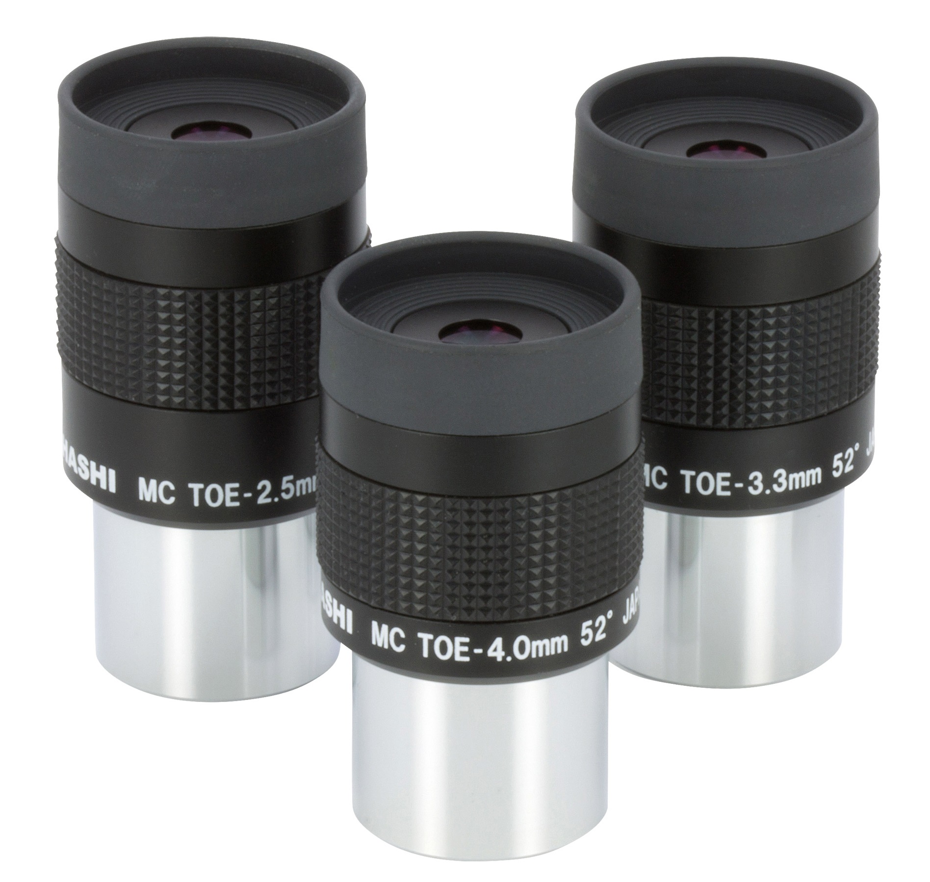 Die Takahashi TOE-Okulare ergänzen die LE-Serie im unteren Brennweitenbereich und ersetzen die beiden Hi-LE Okulare, die nur rund 40° Sehfeld hatten. Sie unterscheiden sich im optischen Aufbau von den LE, es handelt sich um eine 6-linsige Konstruktion, die LE (5-50mm) sind 5-Linser (2-1-2 System).