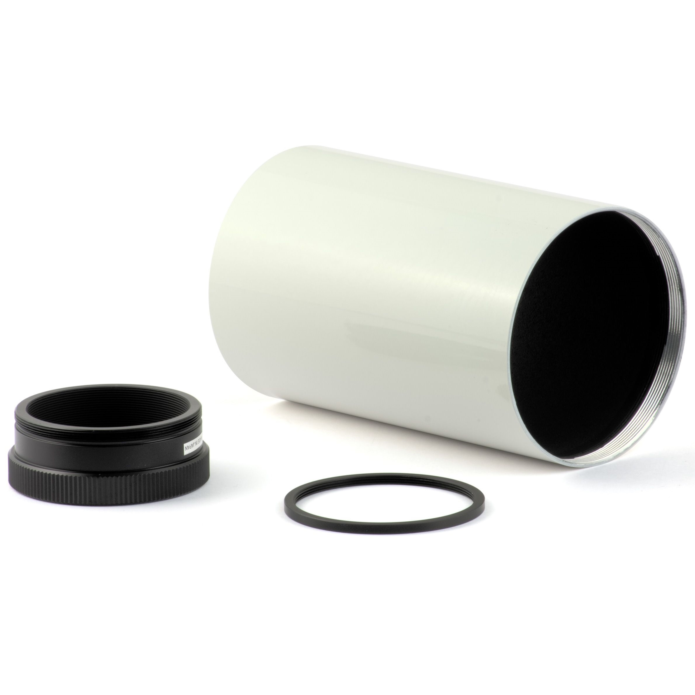Takahashi bietet das Tubus-Rohr des FS-60CB auch einzeln an, man kann somit einen älteren FS-60C mit langem Tubus umrüsten auf die aktuelle CB-Version, die 20mm kürzer ist. Nur so ist es möglich, den FS-60 Reducer mit Kamera-Rotator zu verwenden, bei der alten Version kommt man so nicht in den Fokus. Der Adapter zum Längenausgleich liegt bei, dieser Ring mit 20mm Lichtweg hat beidseitig M56x0,75 Gewinde (fernrohrseitig negativ) und wird direkt auf das Auszugsrohr geschraubt.