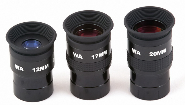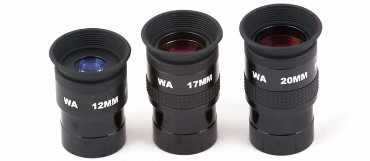 Die Okulare mit 38, 32 und 26mm sind 5-linsige Erfle mit 2" Steckhülse, die Brennweiten 20, 17, 12 und 8mm sind 4-linsige König Okulare und haben 1,25" Steckhülse. Neben den Skywatcher GoldLine Okularen ergänzen sie die 60-70 Grad Weitwinkelokular-Familie. Dieses kurzbauende Okulardesign kommt ohne Barlow Element zurecht, der geringere Augenabstand wird mit besserem Kontrast belohnt.