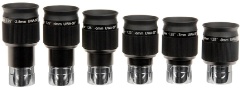 Diese extrem scharfen 58° Weitwinkel-Planetenokulare haben einheitlich 16 mm Augenabstand. Die Kontrastleistung ist enorm hoch, gleichzeitig bietet diese Okularserie ein größeres Sehfeld und einen deutlich entspannteren Einblick als eine herkömmliche Okularkonstruktion, besonders bei den kürzeren Brennweiten. Man kann sie durchaus mit anderen Planetenokularen in der 120-150 EUR Preisklasse vergleichen.