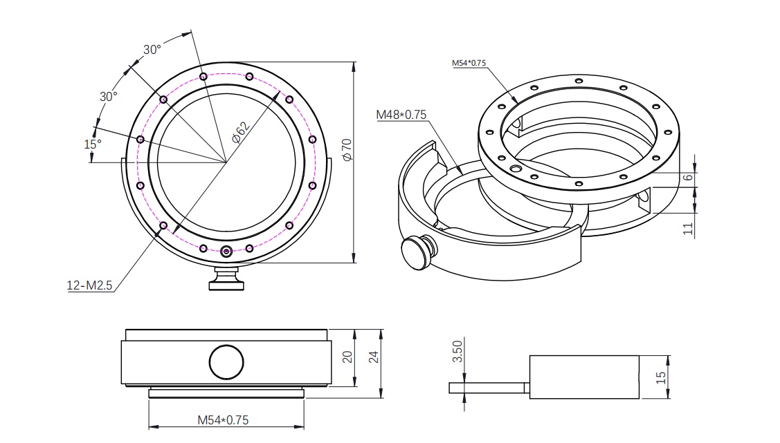 Bauart: Filterschublade Öffnung: M54 Lichtweg: 20mm