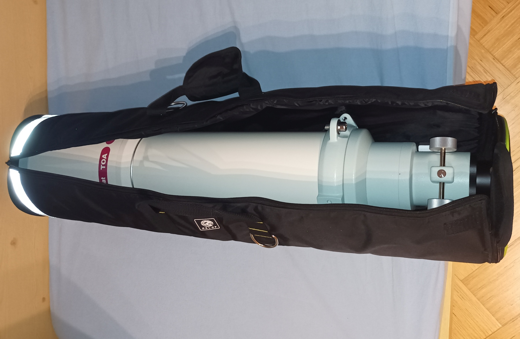 Diese hochwertige Tasche passt für den SkyWatcher 120/900 Black Diamond Apo, jedoch auch für viele Refraktoren anderer Hersteller in ähnlicher Größe.