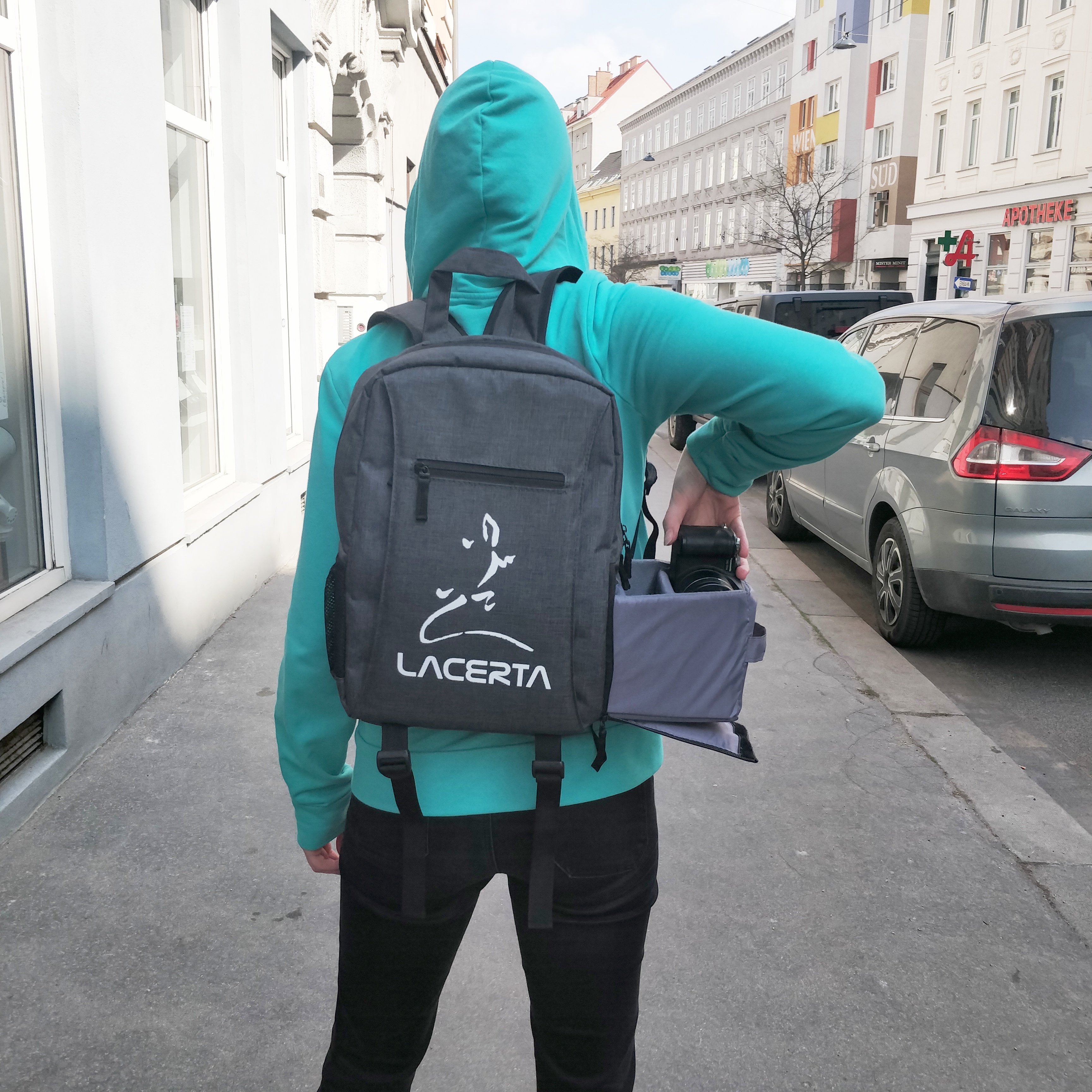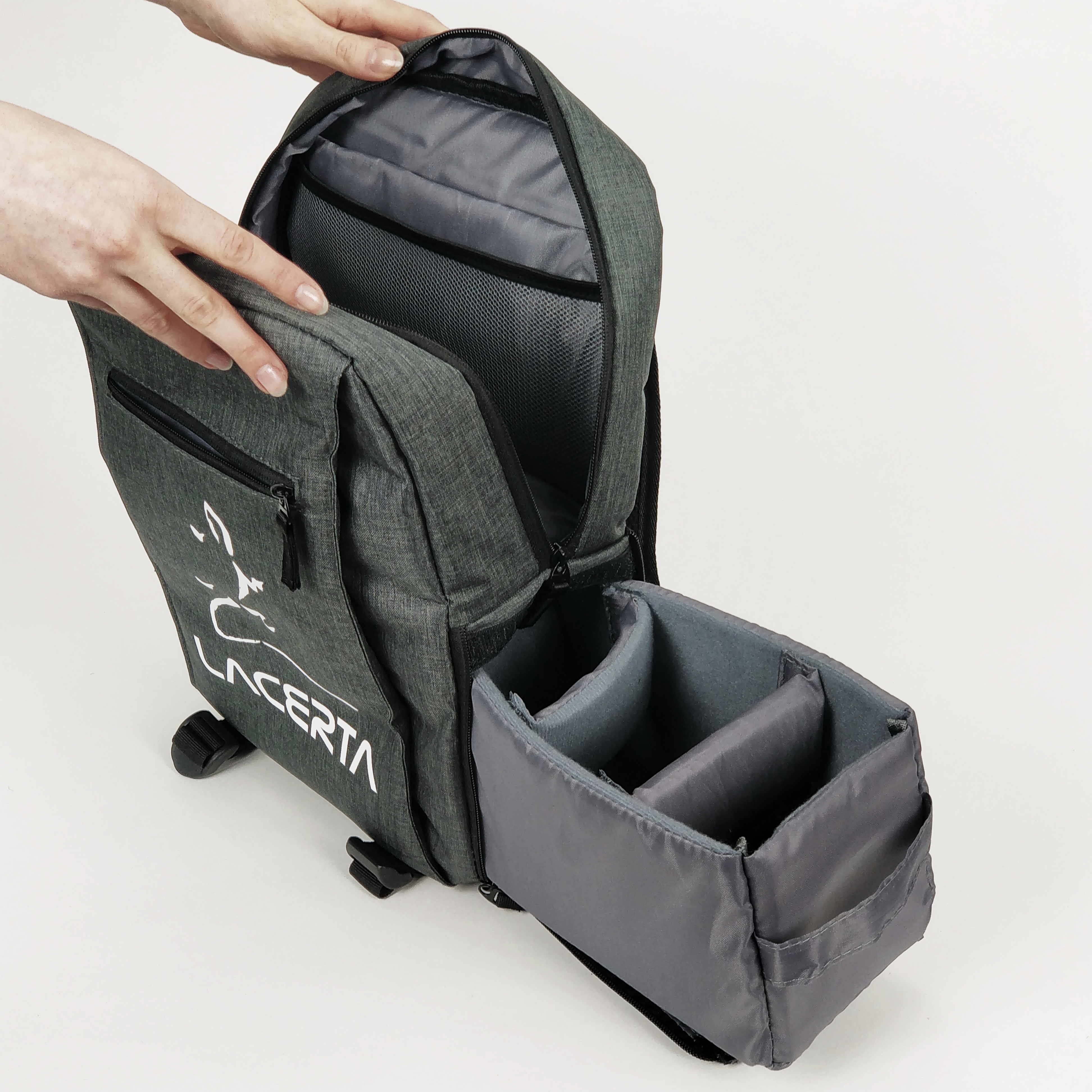 Unser Spezialrucksack mit "Rapid Standby Solution" (Fotorucksack mit Schnellzugriff System) teilt den Behälter in 2 Teile. Der obere Teil des Fotorucksacks ist weiterhin von oben erreichbar, wie es gewohnt. Der Unterteil ist aber eine seitlich ausziehbare Schublade, welche Ihnen wertvolle Sekunden retten wird, wenn es sich um schnelle Fotomotive handelt. Eben Rapid Standby...