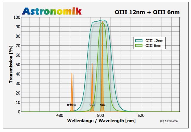 • garantierte Transmission von über 90% bei der OIII Linie (501 nm)