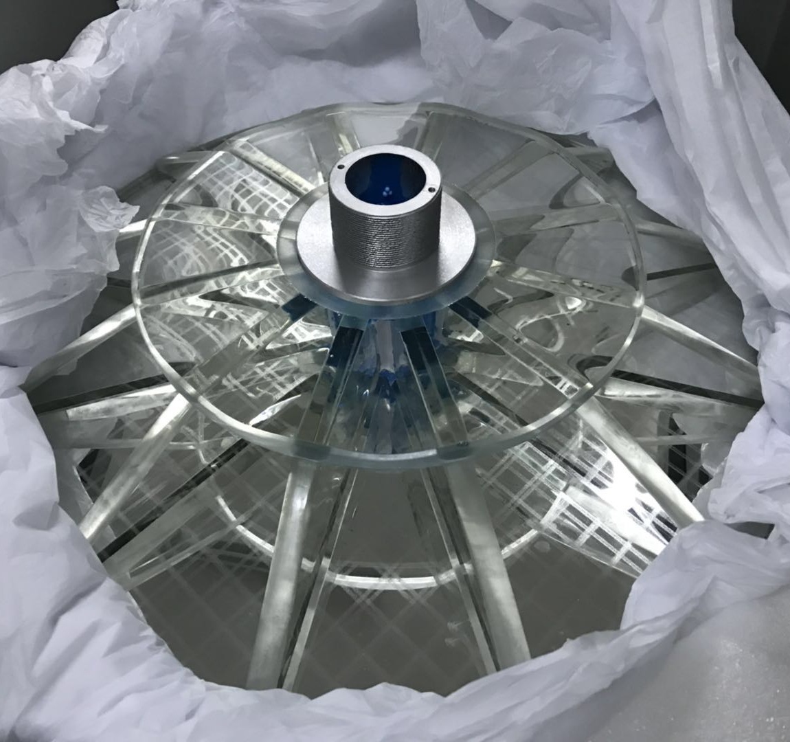 konische Form mit Halterung in der Mitte des Spiegels. Es war eine Innovation der Firma Schmidt-Nantong aus dem Jahr 2016, Hauptspiegel in Leichtbauweise mit konischer Rückseite