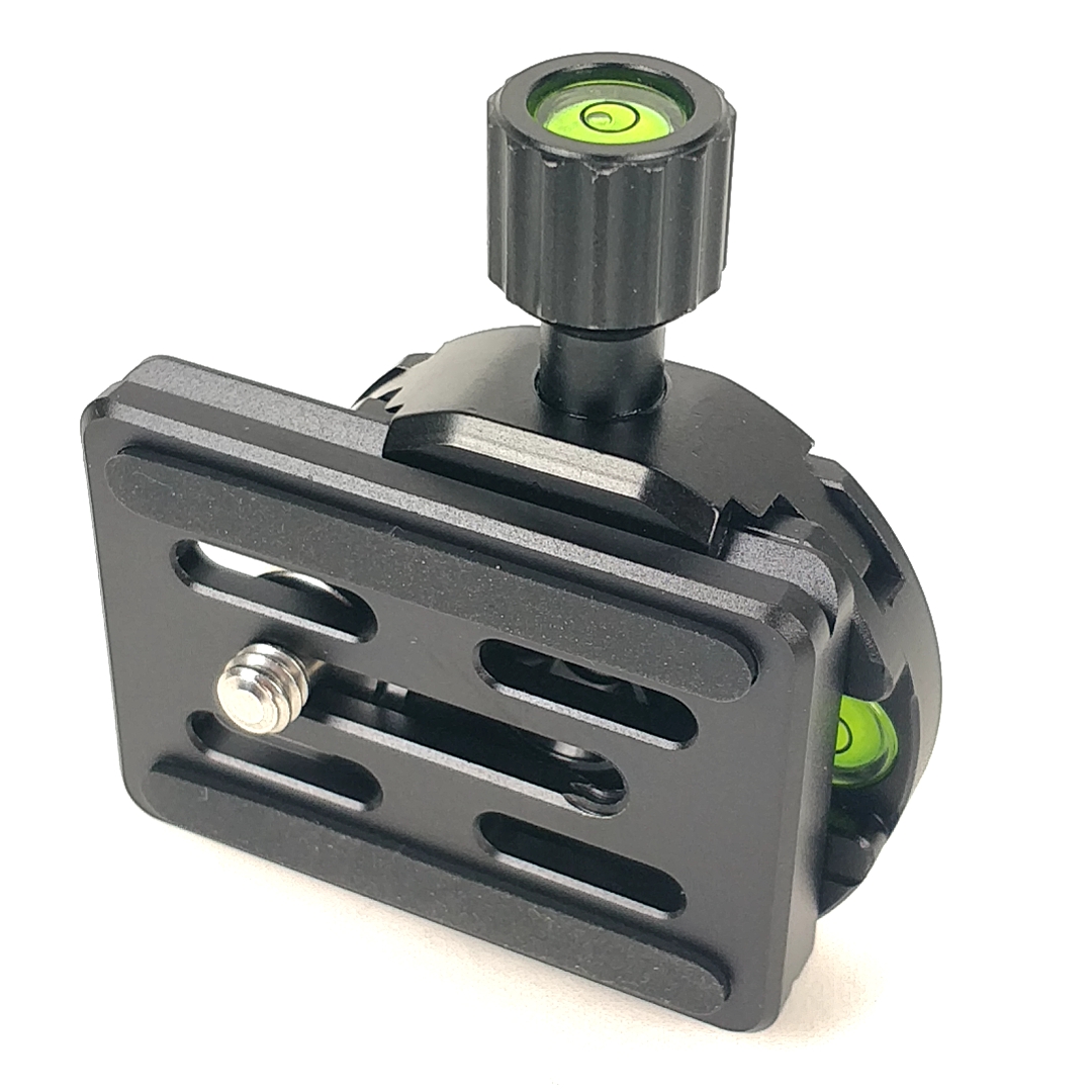 Zwei Wasseerwaage helfen den Horizont genauest ausrichten: egal ob stehende oder liegende Kamera-Ausrichtung verwendet wird.