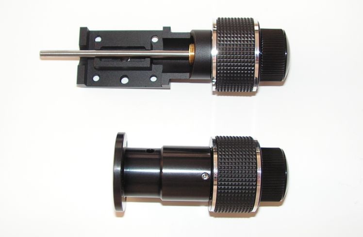Die Montage ist sehr einfach, zuerst wird die Gummierung des originalen Drehknopfes abgezogen. Anschließend die drei Befestigungsschrauben am Tubus entfernt, danach wird die Mikrofokuseinheit mit diesen drei Schrauben wieder befestigt. Zum Schluss müssen lediglich noch die drei kleinen Madenschrauben im inneren Teil angezogen werden, sie klemmen dann letztendlich die Welle im Fokussierer.