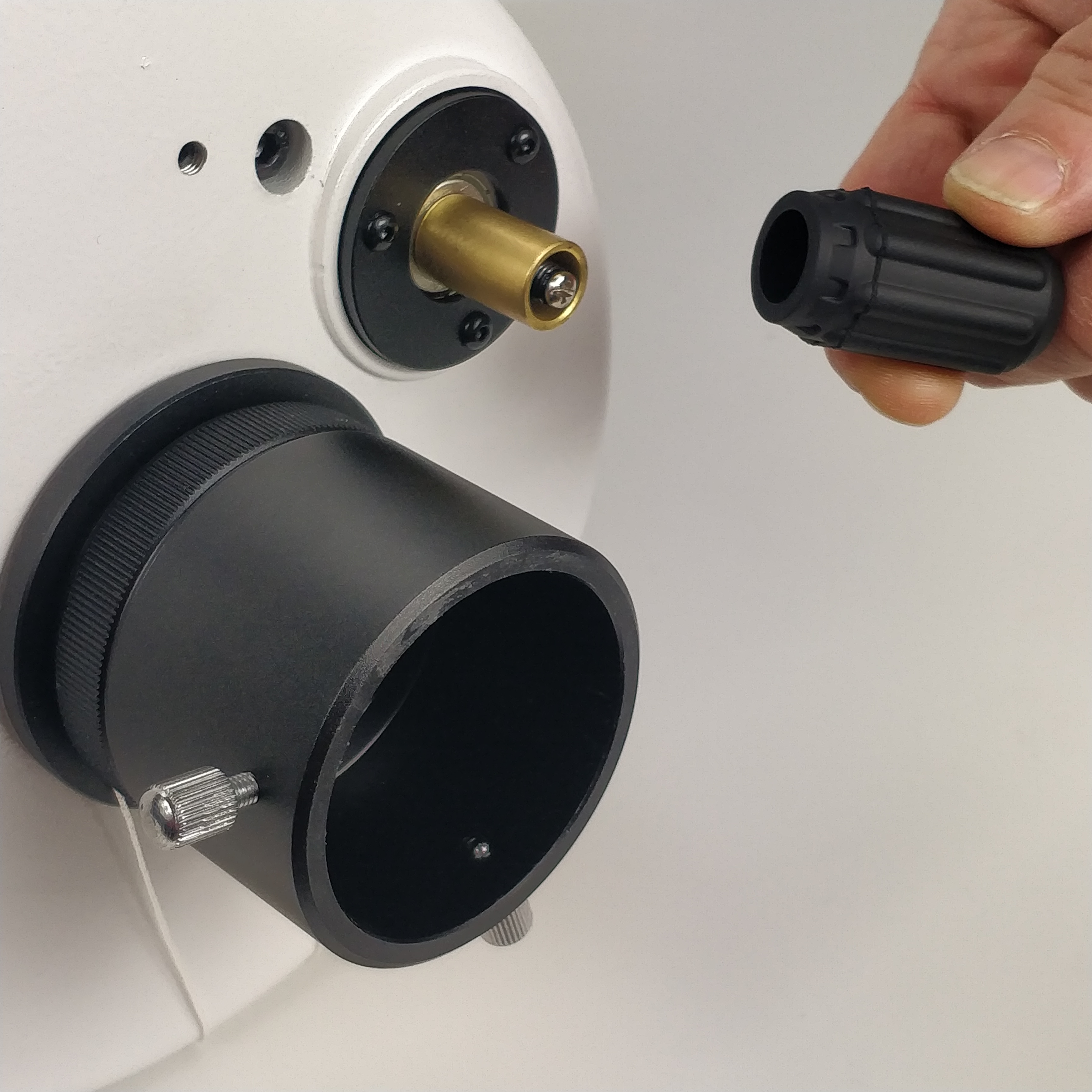 Für Schmidt-Cassegrain Teleskope und Skywatcher Maksutovs (jeweils ab 150mm Objektivdurchmesser) gibt es ebenfalls passende Mikrofokus-Einheiten. Der Aufbau ist durch die andere Bauformen jedoch anders - sogar Herstellungsjahr-Unterschiede sind vorhanden, nachdem die Fokussiereinheit bei katadioptrischen Teleskopen unglücklicherweise nicht genormt sind. Wir empfehehlen deshalb die Fokustrieb Ihres Teleskops messen: Durchmesser und maximale Höhe zumindest, evtl auch die Positionen der 3 Befestigungsschrauben zum Tubus.