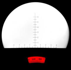 Ins Okular projizierte Strichplatte für die Bestimmung der Höhe (wenn die Entfernung bekannt ist) oder der Entfernung (wenn die Höhe bekannt ist).
