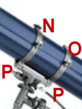 Wie bekomme ich das Teleskop auf die Montierung? Hier mit Rohrschellen, bei kleineren Optiken ist meist eine Prismenschiene direkt am Tubus montiert, die dann auf der Montierung aufgeklemmt wird. N) Einviertel Zoll Fotoschraube, hier kann eine Kamera, oder ein Leitrohr aufgesetzt werden. O) Rohrschellen, in denen sitzt der Tubus P) Prismenschiene, die Verbindung zum Teleskop. An der Montierung ist eine Schnellklemmung, die diese Prismenschiene aufnimmt. |