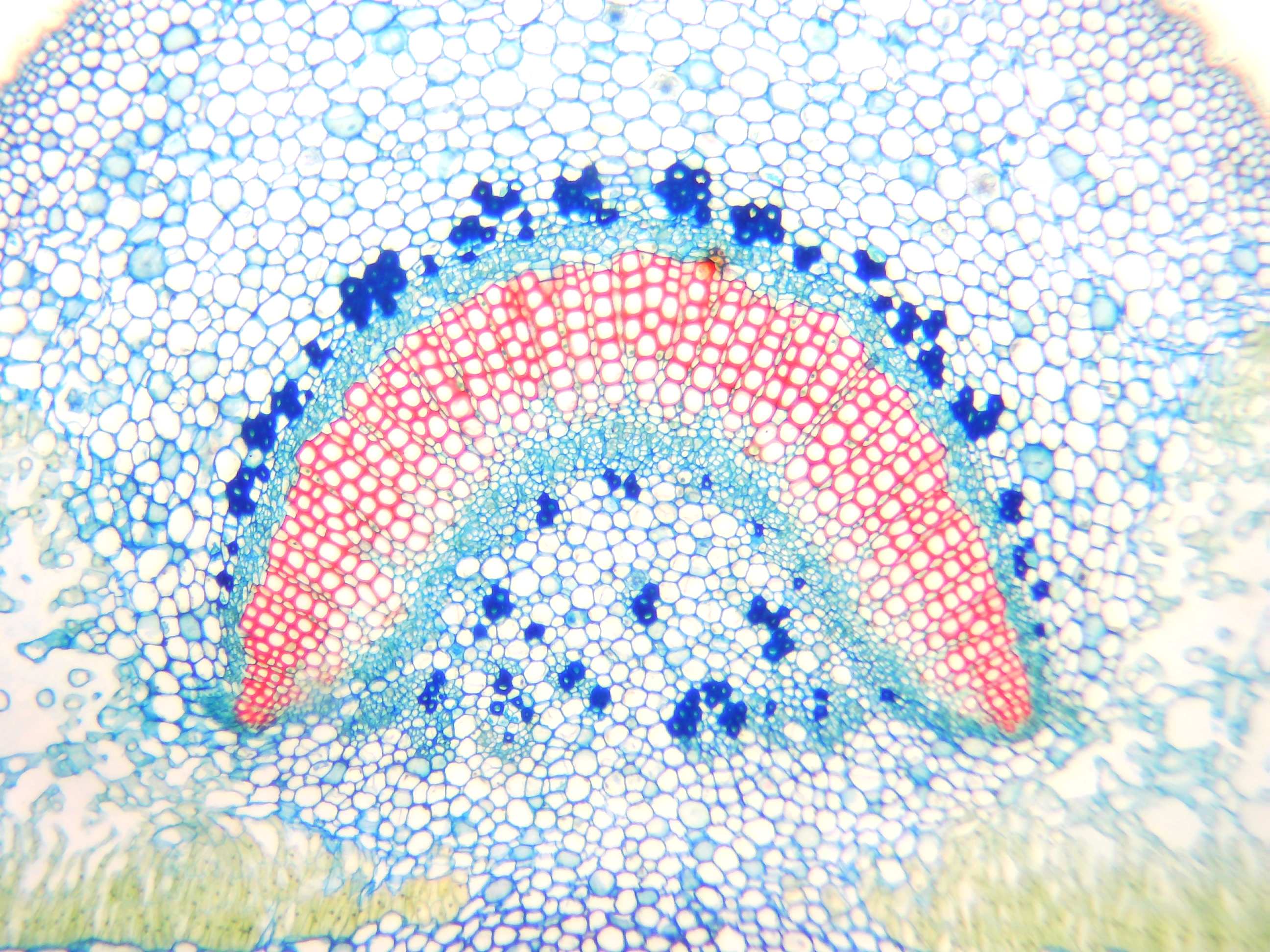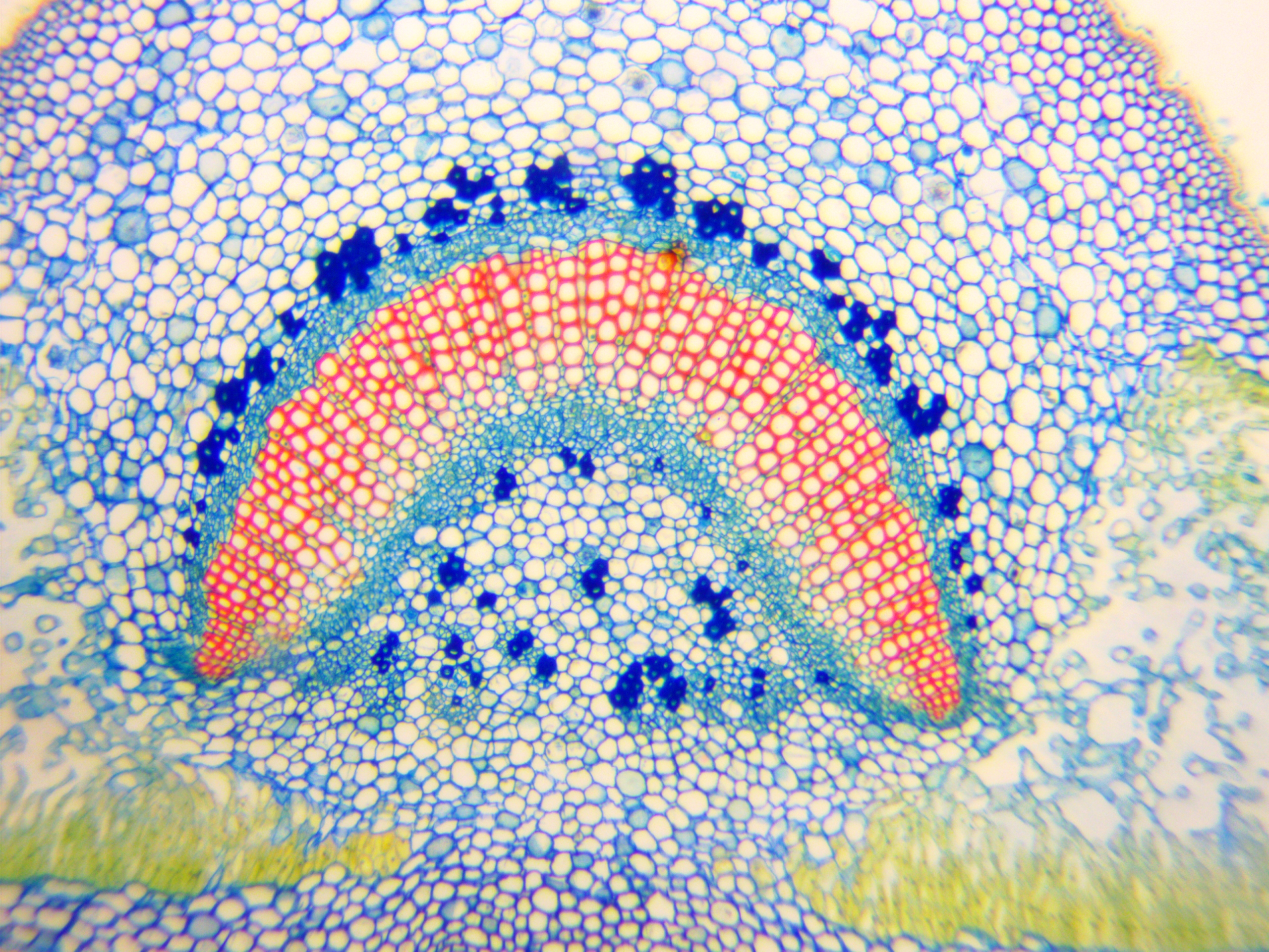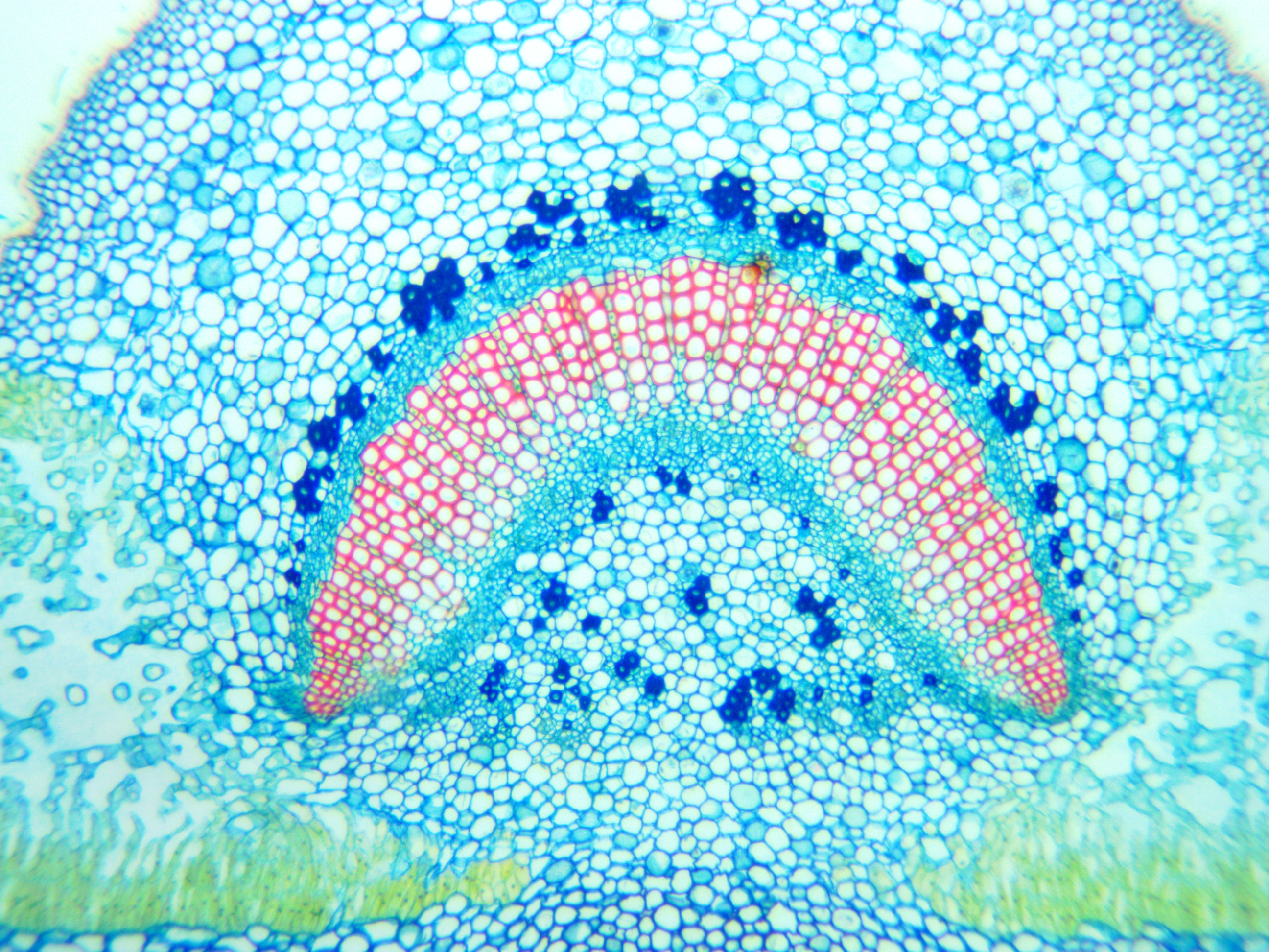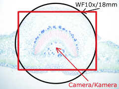 Alle Testfotos wurden durch einen preiswerten Mikroskop (Fremdfabrikat, 500 EUR Preisklasse) mit achromatischen Objektiven 10x (Botanik) und 40x (Hystologie) aufgenommen. Es ging ja darum, die Kamera, und nicht das Mikroskop zu testen...