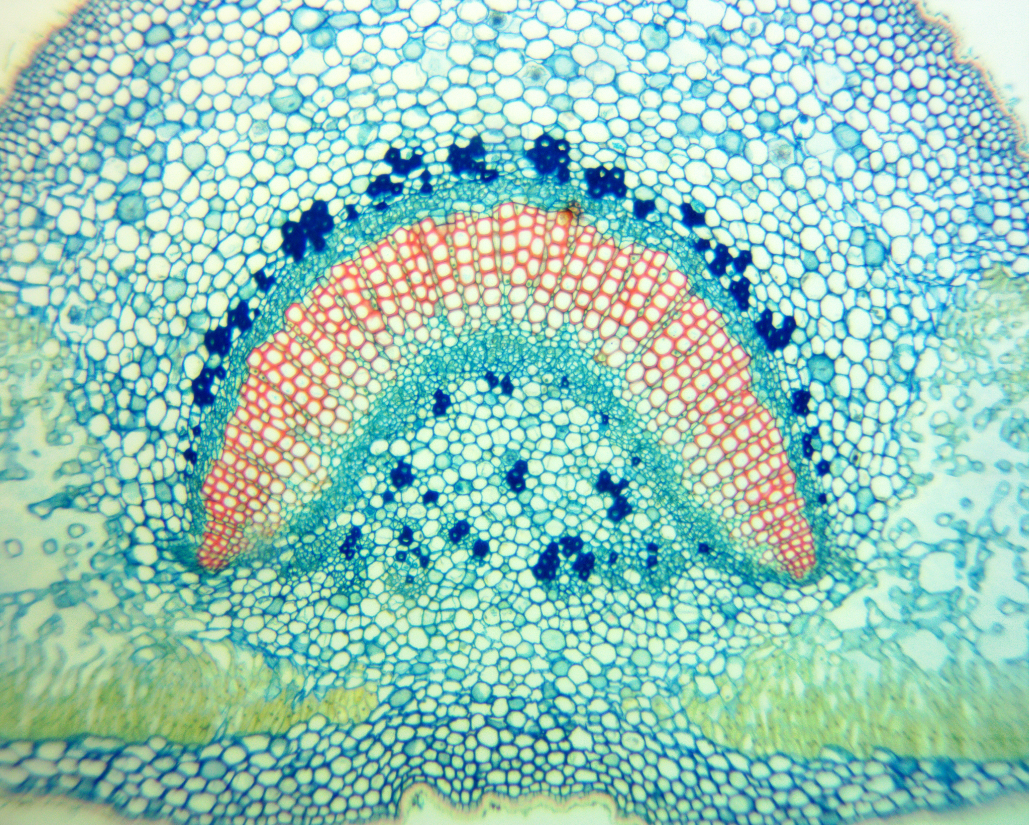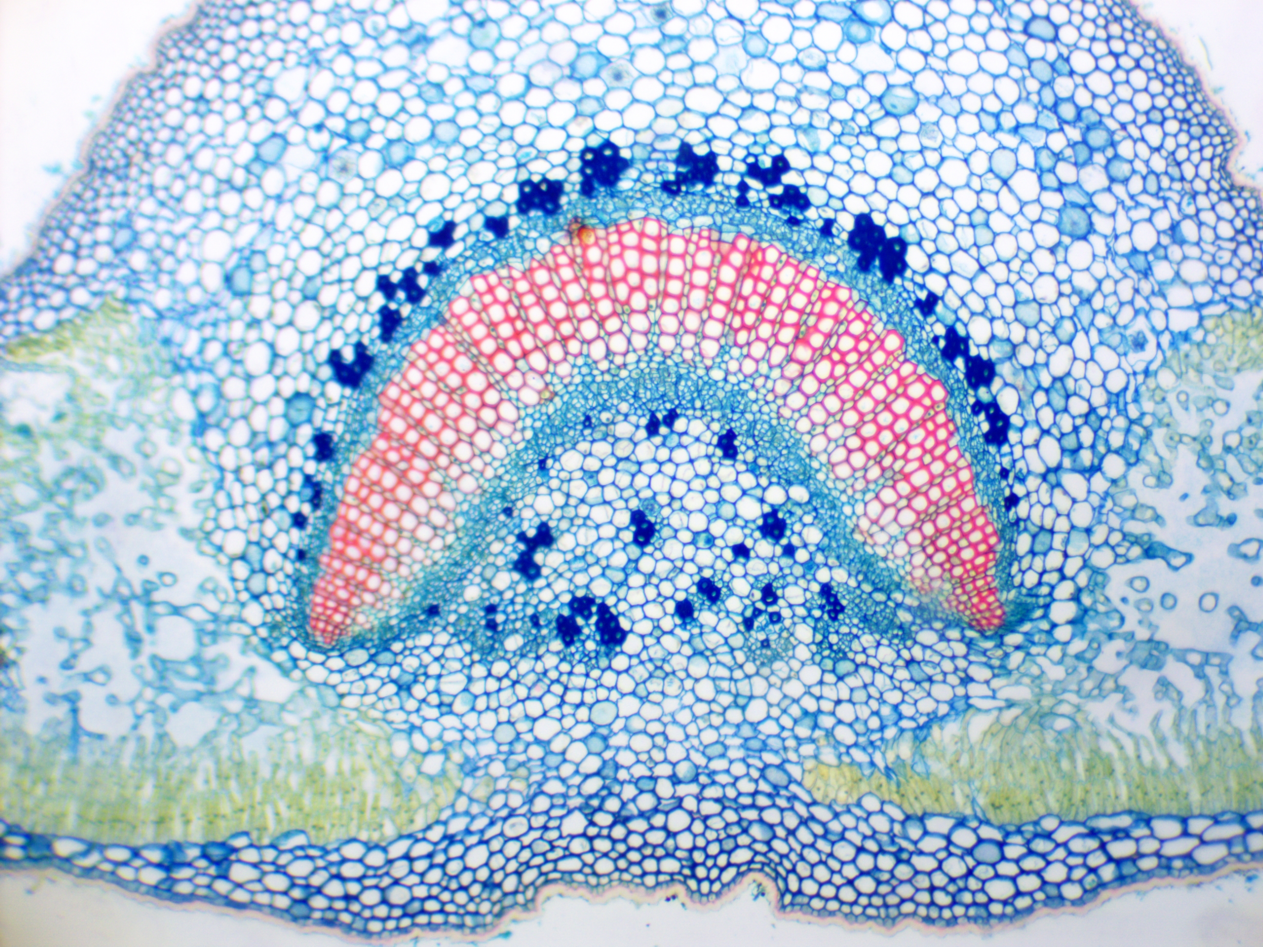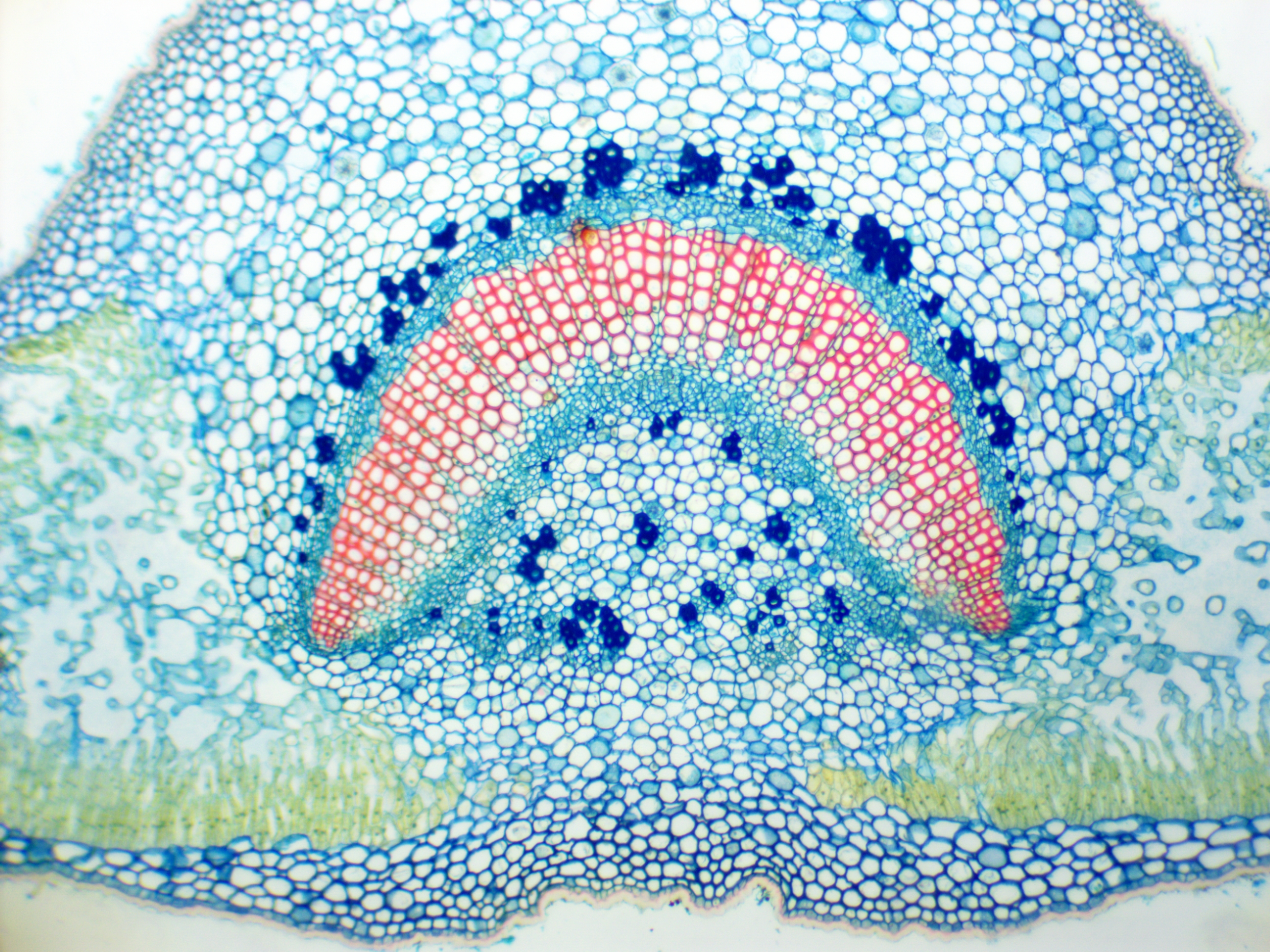 Alle Testfotos wurden durch einen preiswerten Mikroskop (Fremdfabrikat, 500 EUR Preisklasse) mit achromatischen Objektiven 10x (Botanik) und 40x (Hystologie) aufgenommen. Es ging ja darum, die Kamera, und nicht das Mikroskop zu testen...