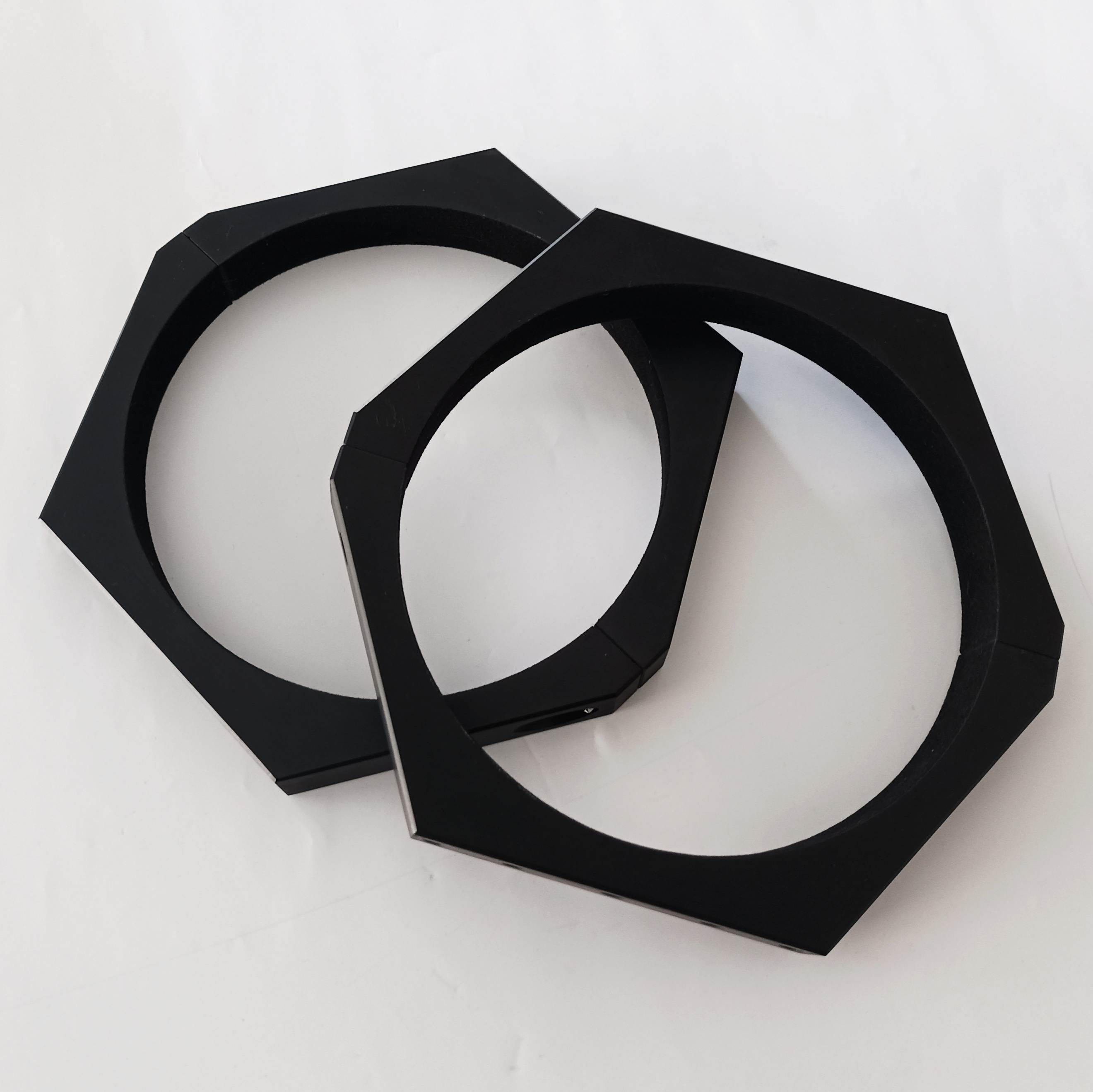 Hochwertige CNC-Rohrschellen in modernem Look, schwarz eloxiert, mit Velour ausgekleidet, mit je 5 M6-Gewinden oben und unten - vielfältige Anbaumöglichkeiten!
