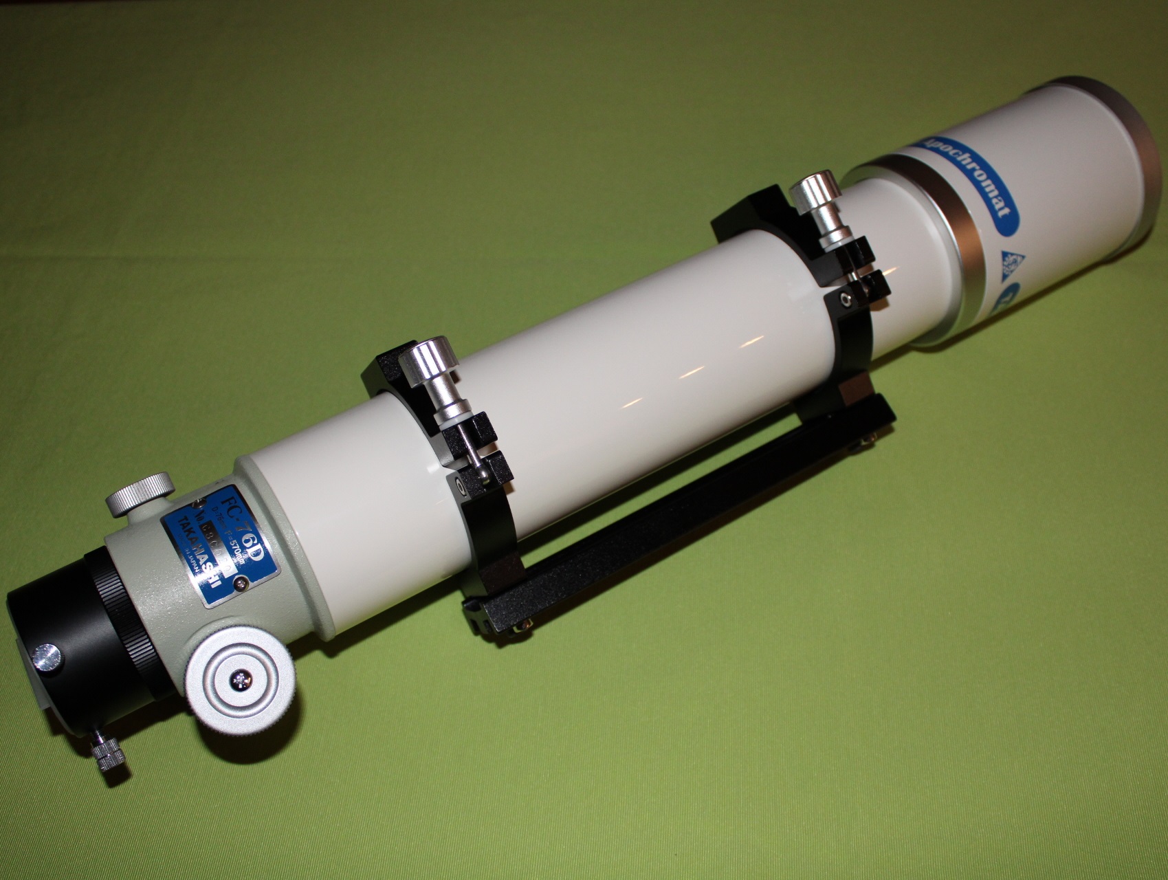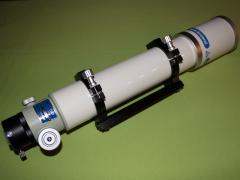 Rohrschellenpaar für den Takahashi FS-60, FS-60Q, FC-76DC, FC-76DCU und FC-76Q. Vor allem bei längeren Geräten wie dem FC-76DC(U) oder FC-76Q sind zwei getrennte Schellen und eine lange Schiene empfohlen.