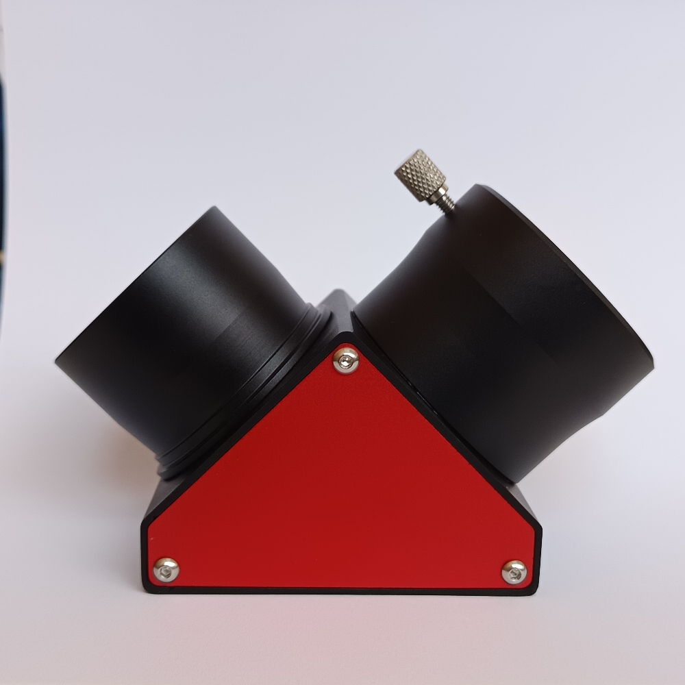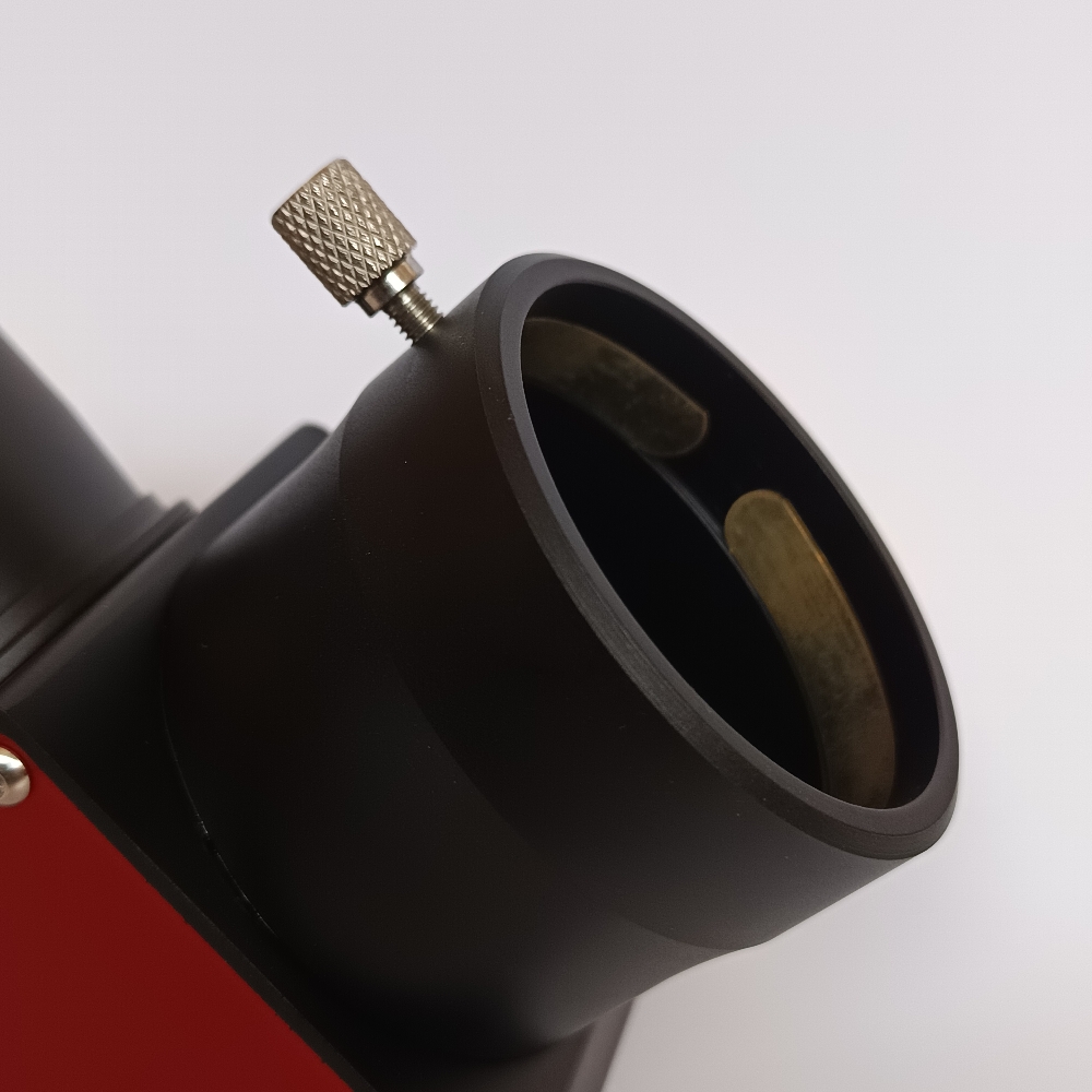 Standard 2" Zenitspiegel im roten Designerlook, mit einem Reflexionsgrad von 91% und hoher Oberflächengüte. Das CNC-gefräste Gehäuse des Zenitspiegels, als auch die Steckhülse und die Okularaufnahme samt Reduzierung, sind aus Metall gefertigt.