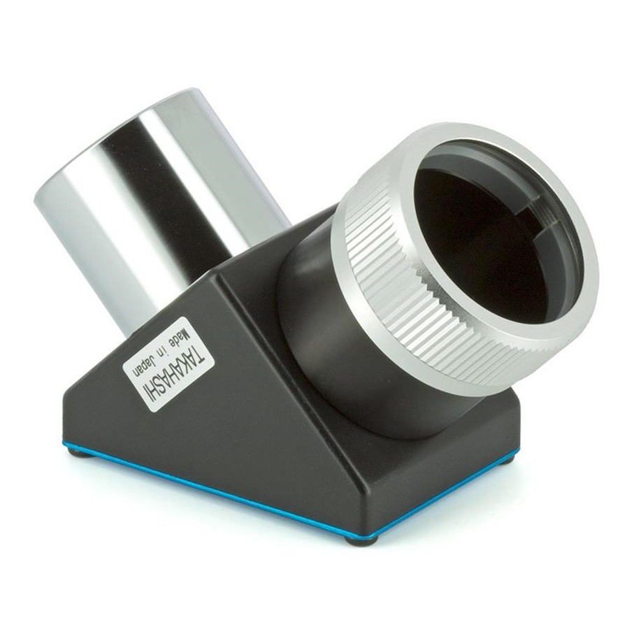 Das Takahashi Zenitprisma sieht äußerlich gleich aus wie ein Zenitspiegel, es hat auch die gleiche umlenkende Wirkung auf den Strahlengang, jedoch gibt es wesentliche Unterschiede. Dieses Zenitprisma besitzt mit nur 63,5mm einen kürzeren Lichtweg als ein vergleichbarer Zenitspiegel, da das Licht durch das Glas hindurchgeht, bei knapper Fokuslage ermöglicht so ein Prisma manchmal die sonst aussichtslose Fokussierung. Der so ersparte Fokusweg beträgt immerhin ca. 10mm.